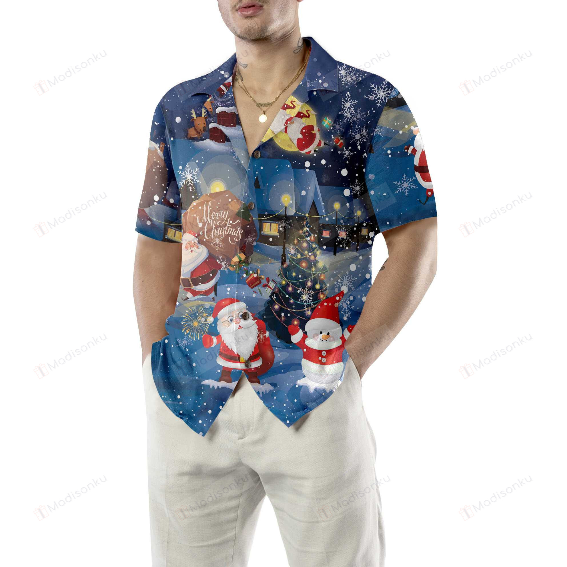 Merry Christmas Santa And Gifts Hawaiian Shirt