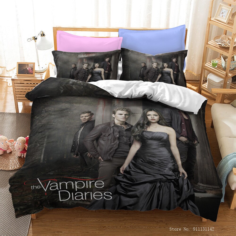Modern Tv Series Vampire Diaries Printed Bedding Set 3D Bedroom Decoration Large Size Duvet Quilt Cover Pillowcase Bedding Duvet Covers
