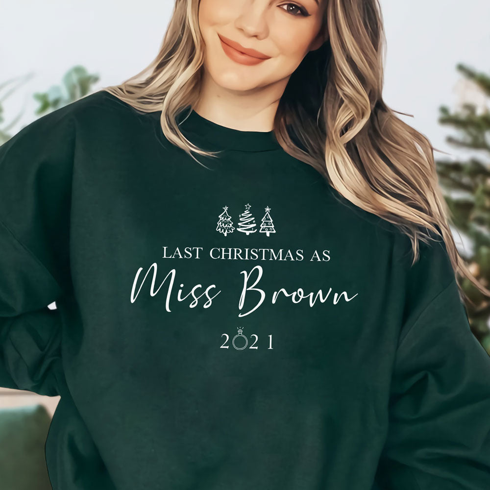 Personalized Last Christmas As A Miss, Christmas Gift, Gifts For Her, Engagement Gift Sweatshirt