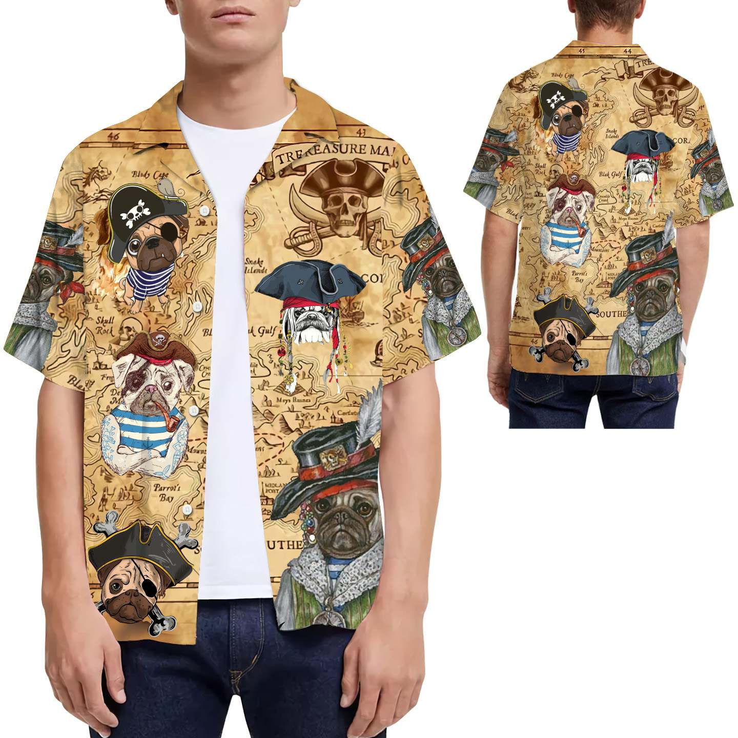 Pirate Pug Men Hawaiian Shirt For Dog Lovers – Gift For Pug Dog Lovers