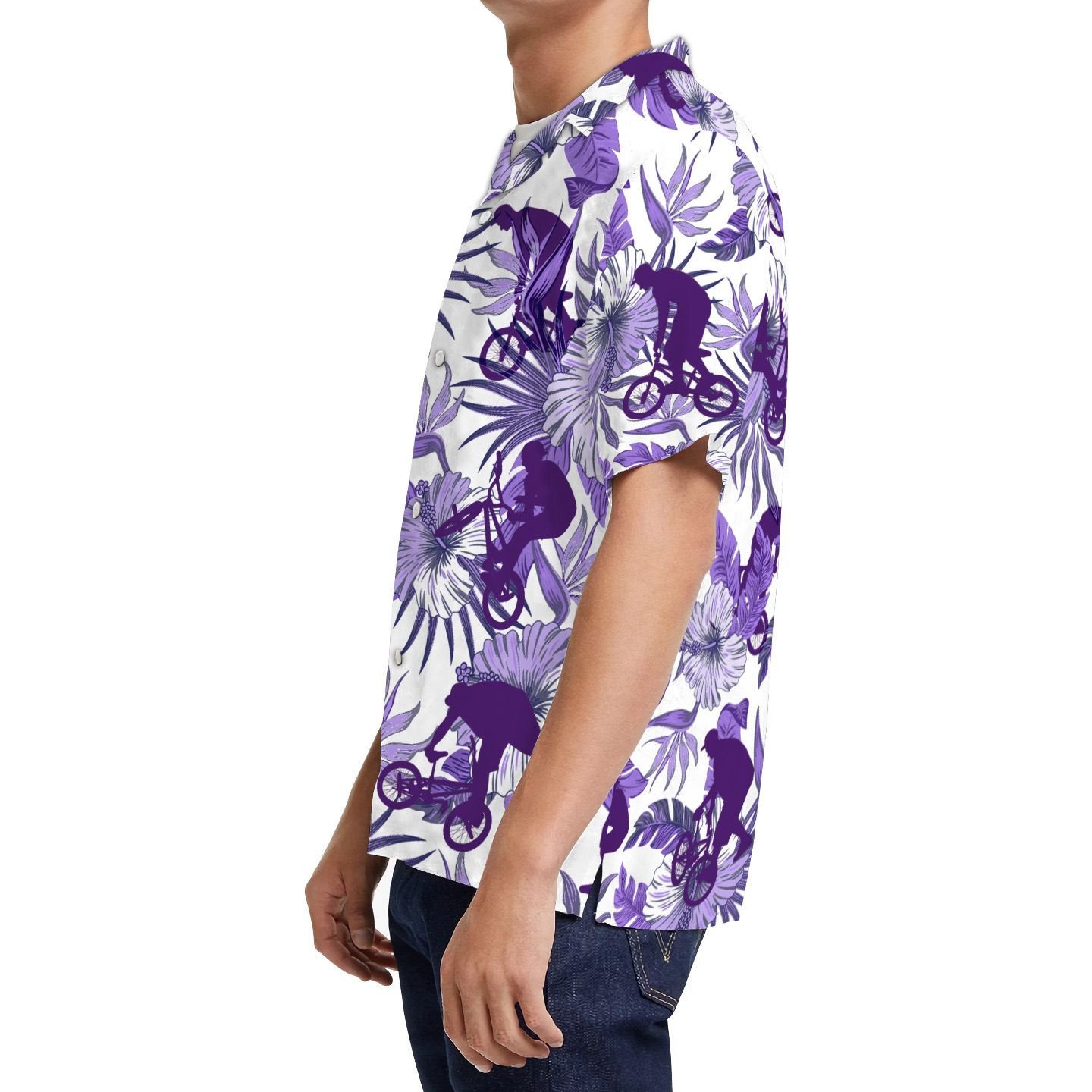 Purple Bmx Hibiscus Men Hawaiian Shirt For Extreme Sport Lovers