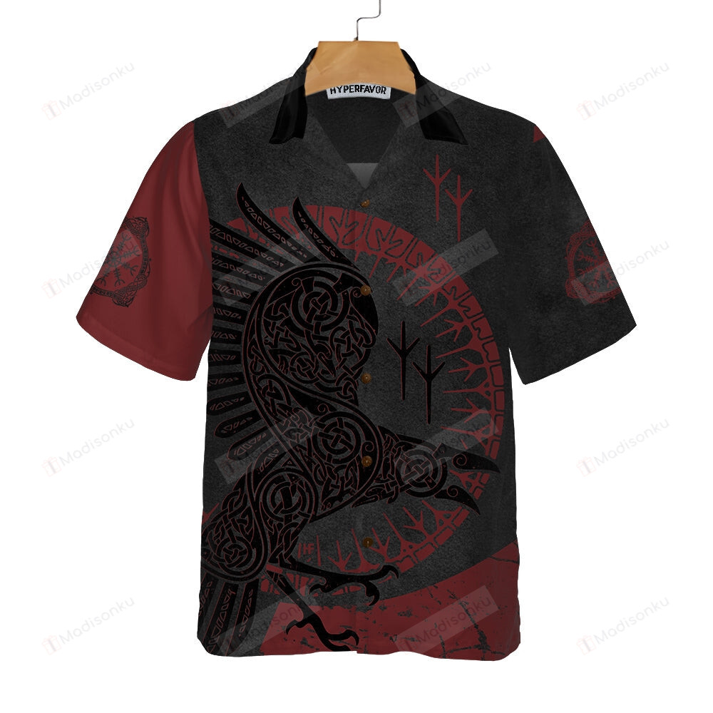 Red And Black Raven Viking Hawaiian Shirt