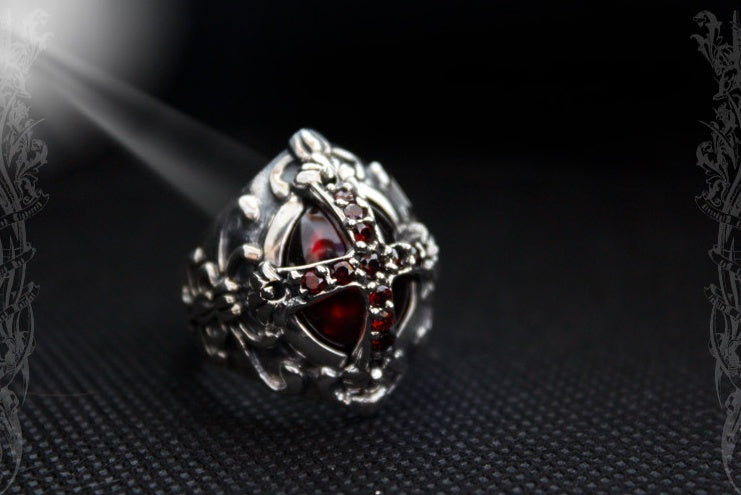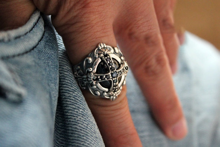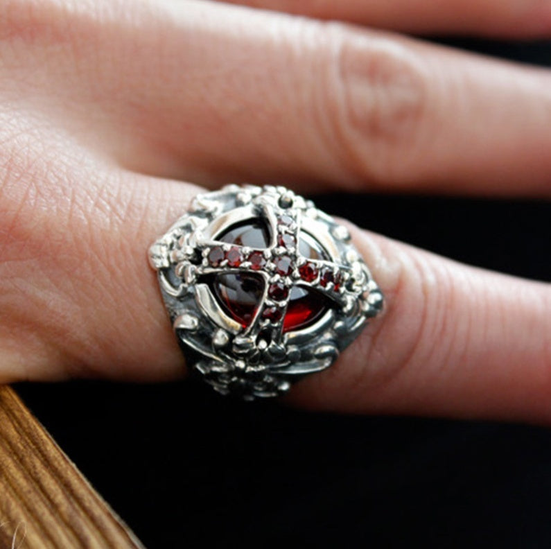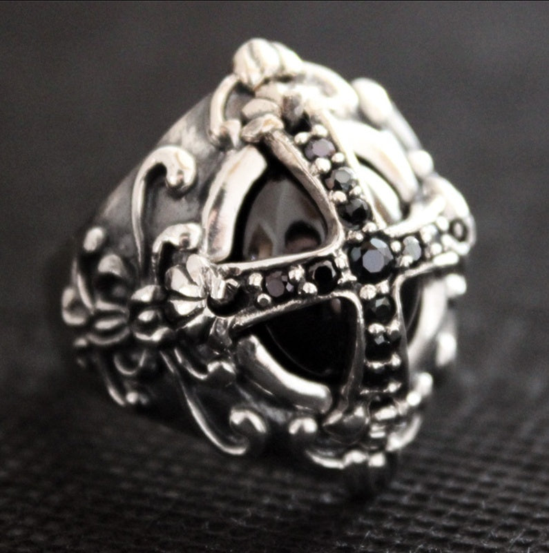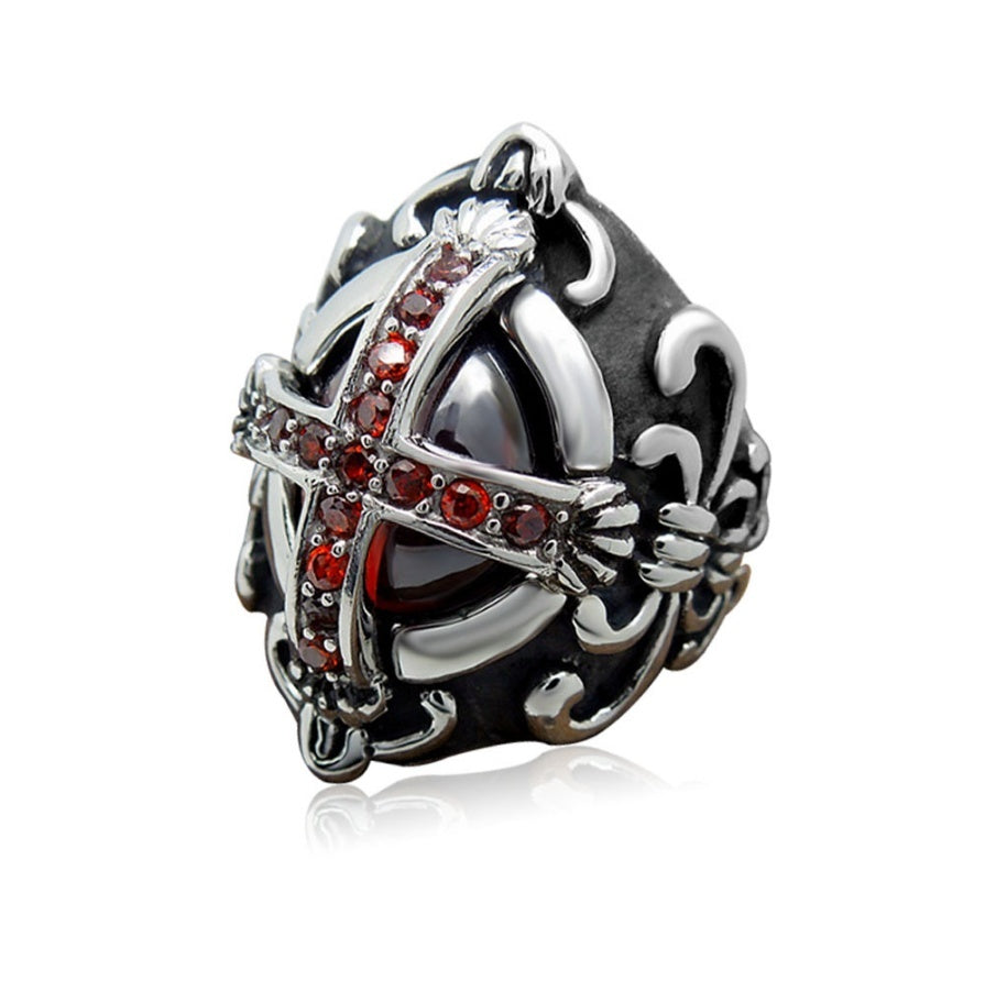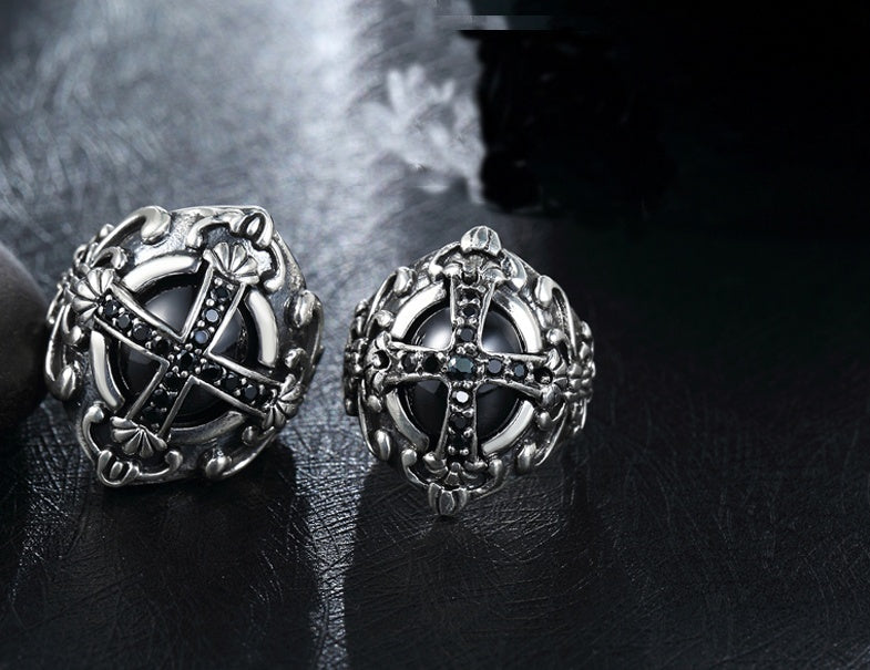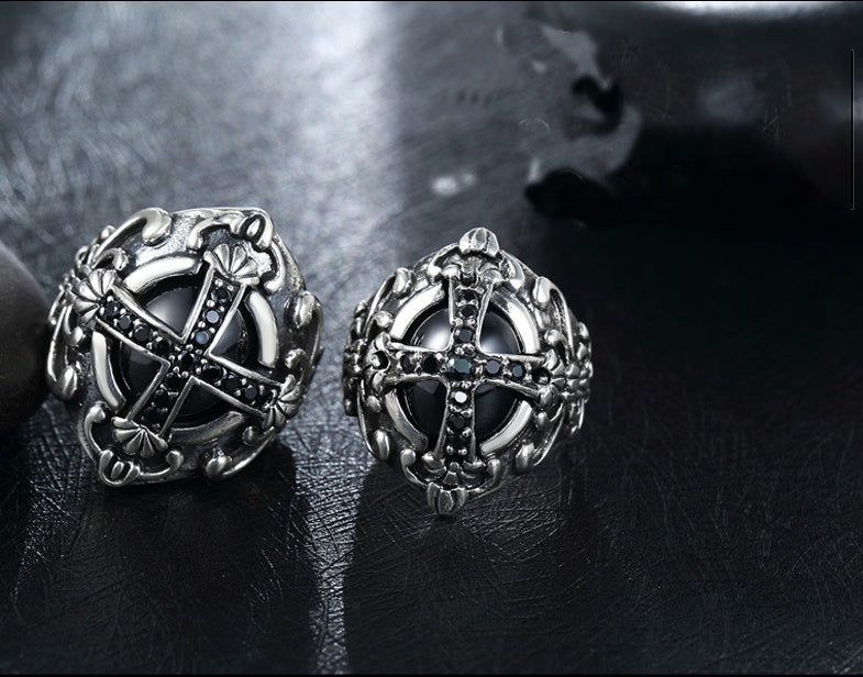 Retro Titanium Steel Goth Cross Vampire Punk Personality Crown Men 316L Stainless Steel Ring
