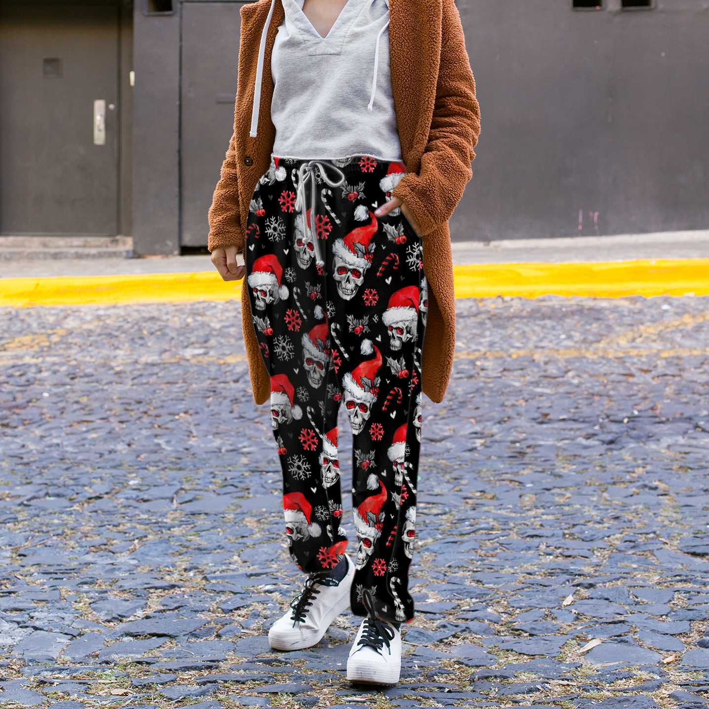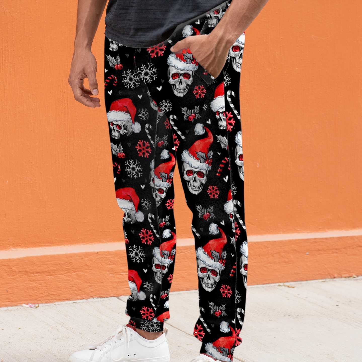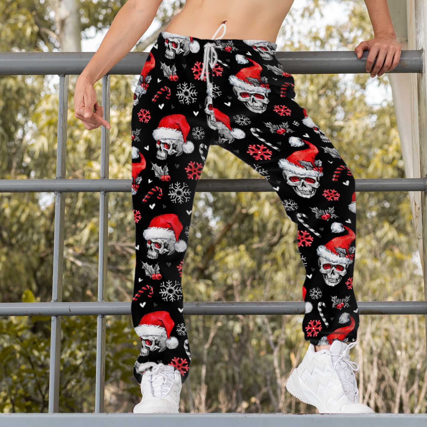 Santa Skull Black All Over Print Sweatpants, Christmas Skull Sweatpants, Best Christmas Gift
