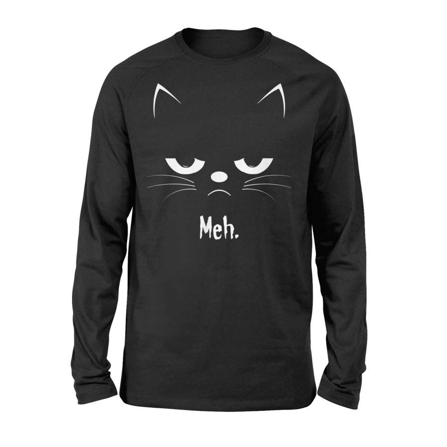 Sarcastic Angry Cat MEH Halloween Tshirt – Cat Face Halloween Tshirt – Standard Long Sleeve