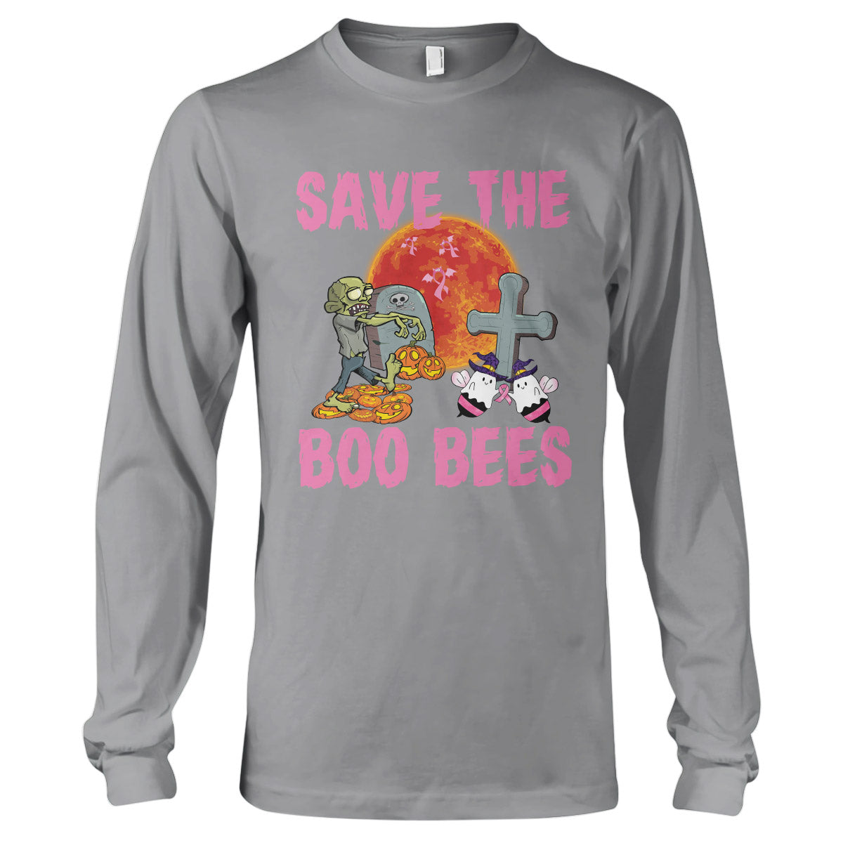 Save The Boo Bees Halloween Breast Cancer Awareness Shirt, Breast Cancer Awareness Month Long Sleeve T-Shirt