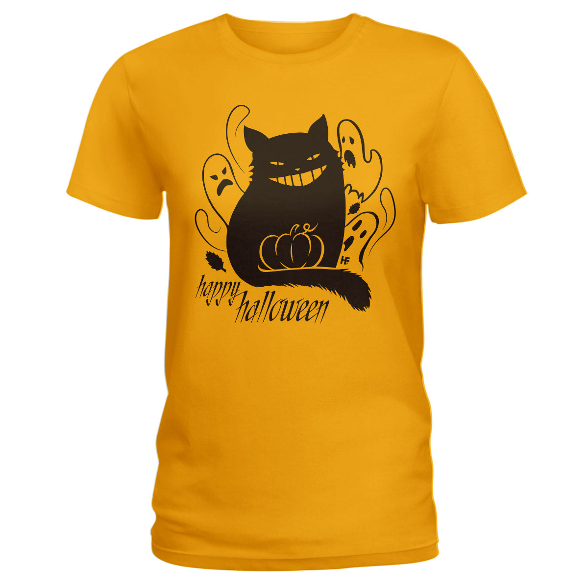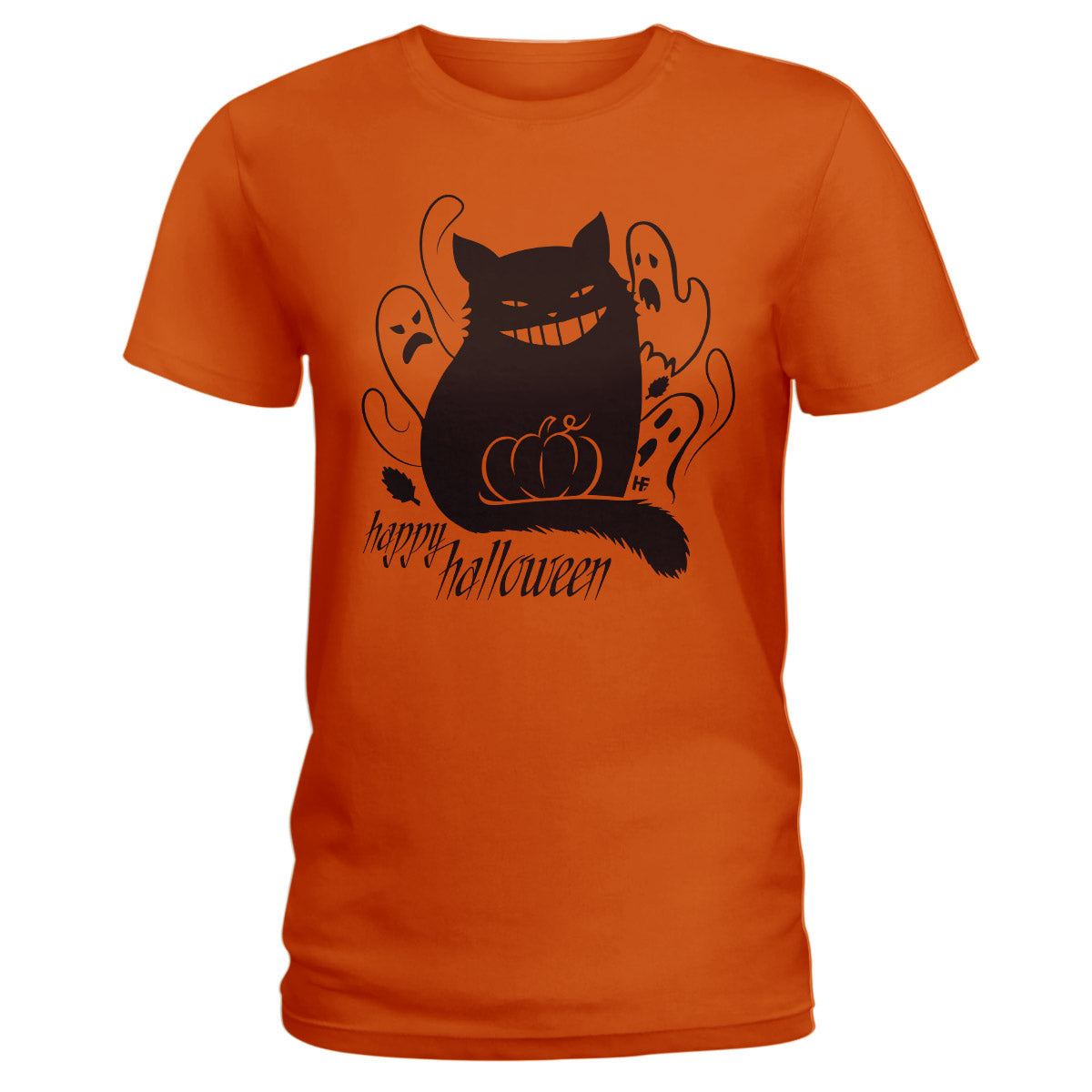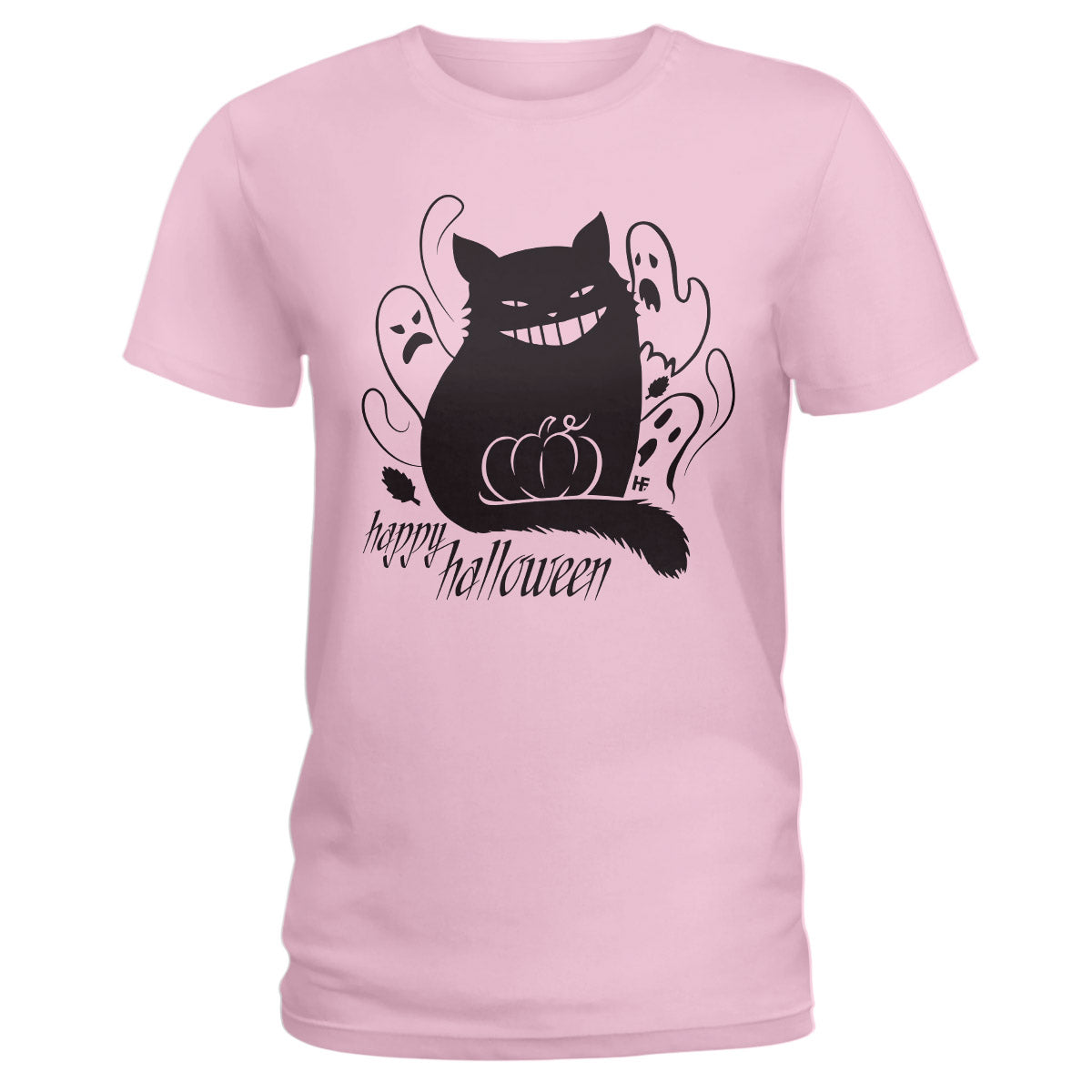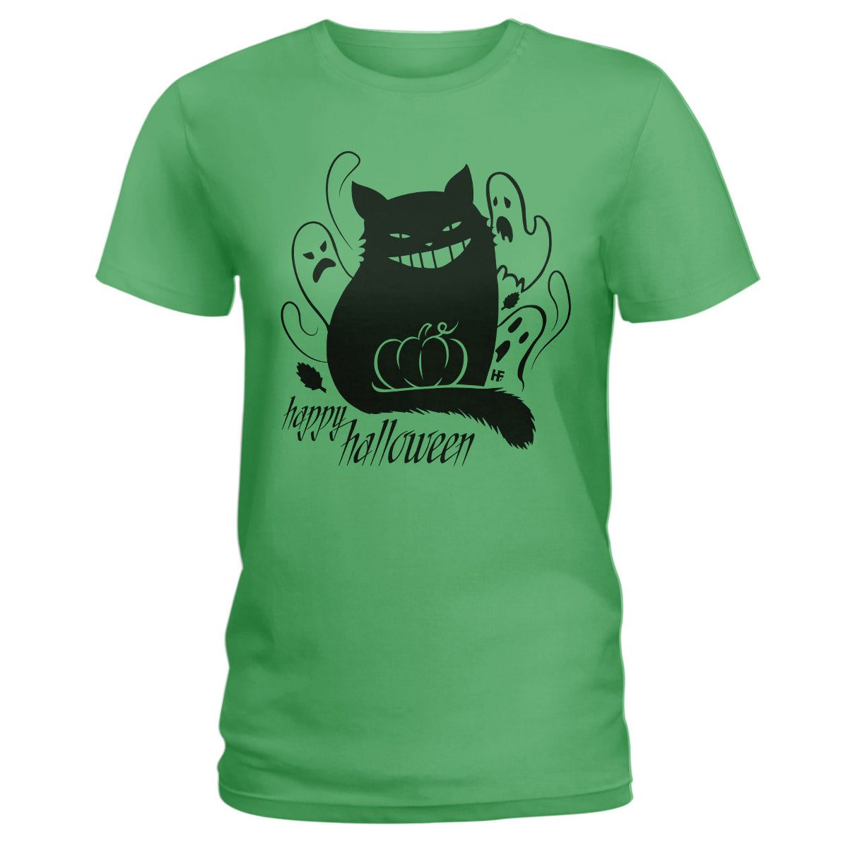 Scary Cat Halloween Shirt, Black Cat Halloween Ladies T-Shirt