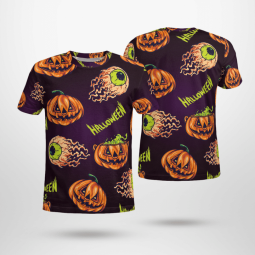 Scary Flying Eyeball Pumpkins Spooky Purple Halloween 3D All-Over Print Unisex T-Shirt