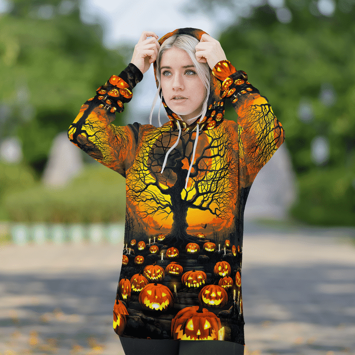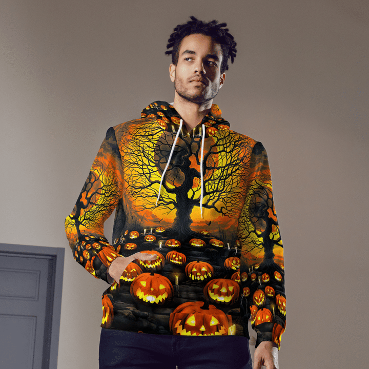 Scary Full Moon Night Pumpkin Yard Spooky Halloween Black Yellow 3D All-Over Print Unisex Hoodie