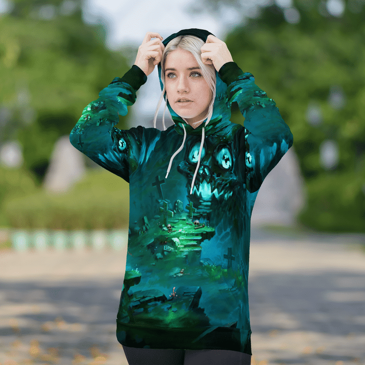 Scary Gate Of Demon Halloween Black Green 3D All-Over Print Unisex Hoodie