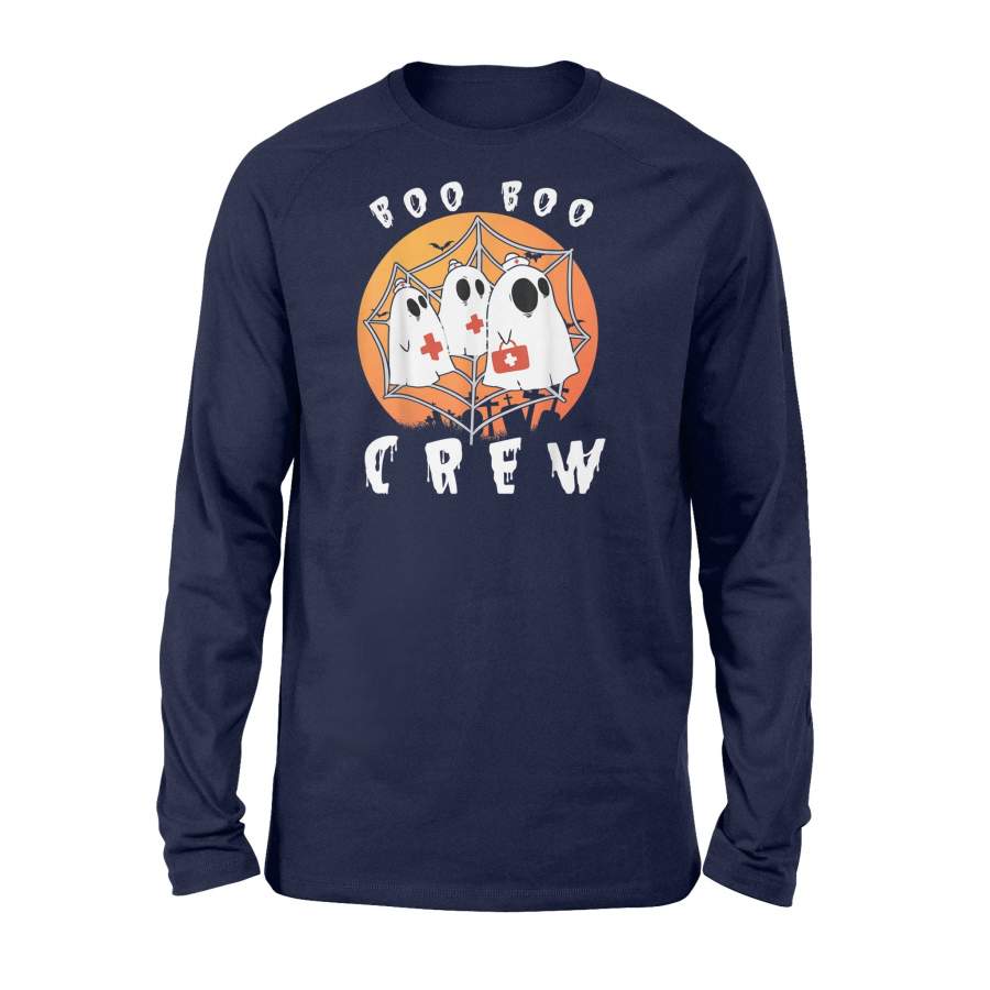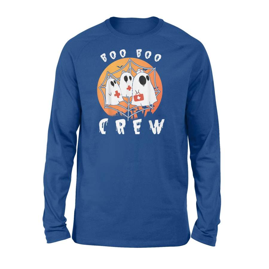 Scary Ghosts Nurse On Halloween Bat Moon Boo Boo Crew Long Sleeve T-Shirt