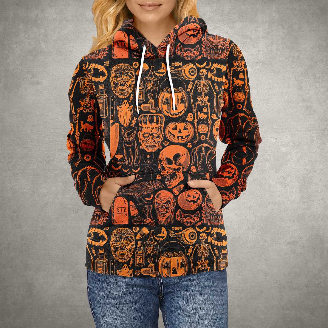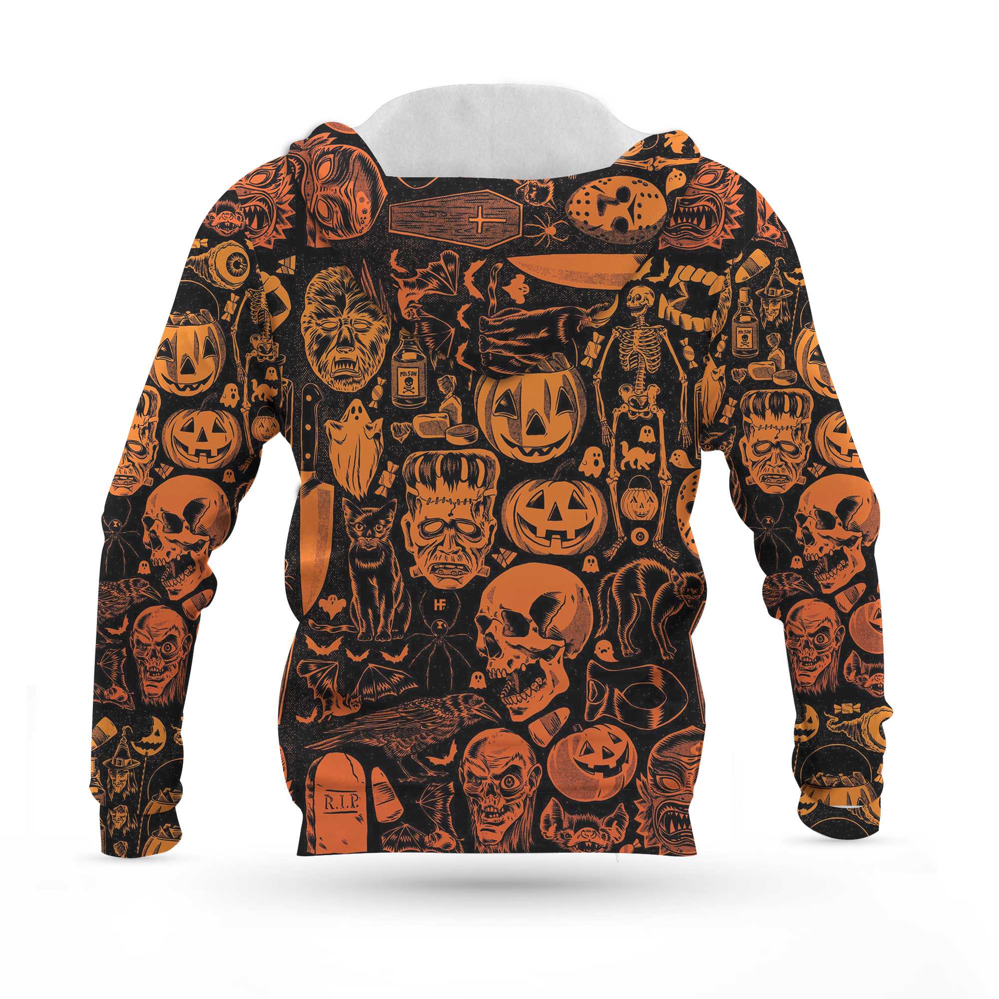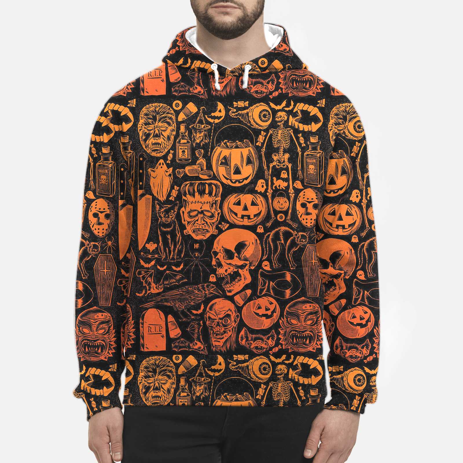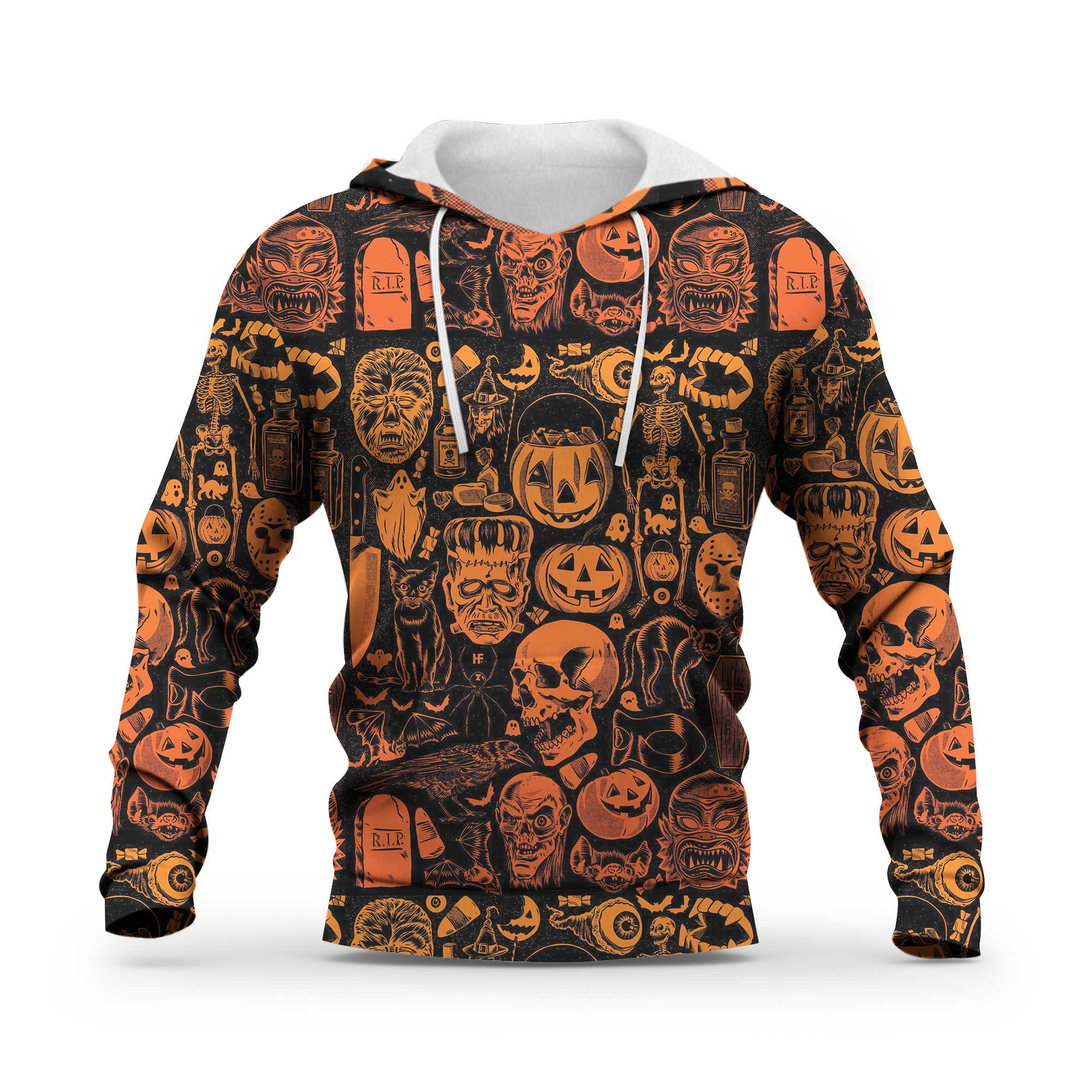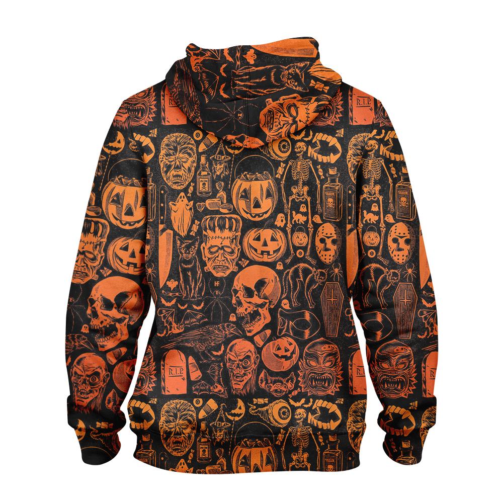 Scary Halloween Monsters Shirt For Men All Over Print Hoodie, Pumpkin Orange Halloween-Themed Graphic Hoodie
