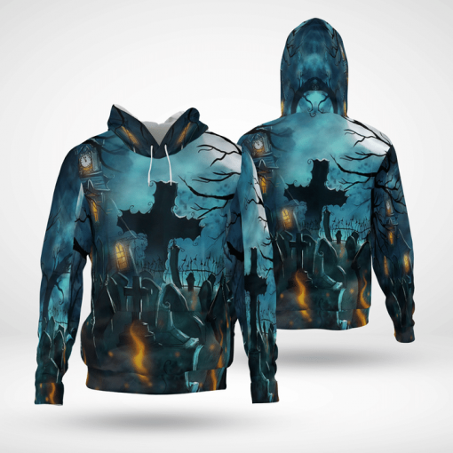 Scary Halloween Night At Graveyard Spooky Skyblue Halloween 3D All-Over Print Unisex Hoodie