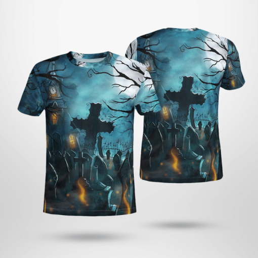 Scary Halloween Night At Graveyard Spooky Skyblue Halloween 3D All-Over Print Unisex T-Shirt