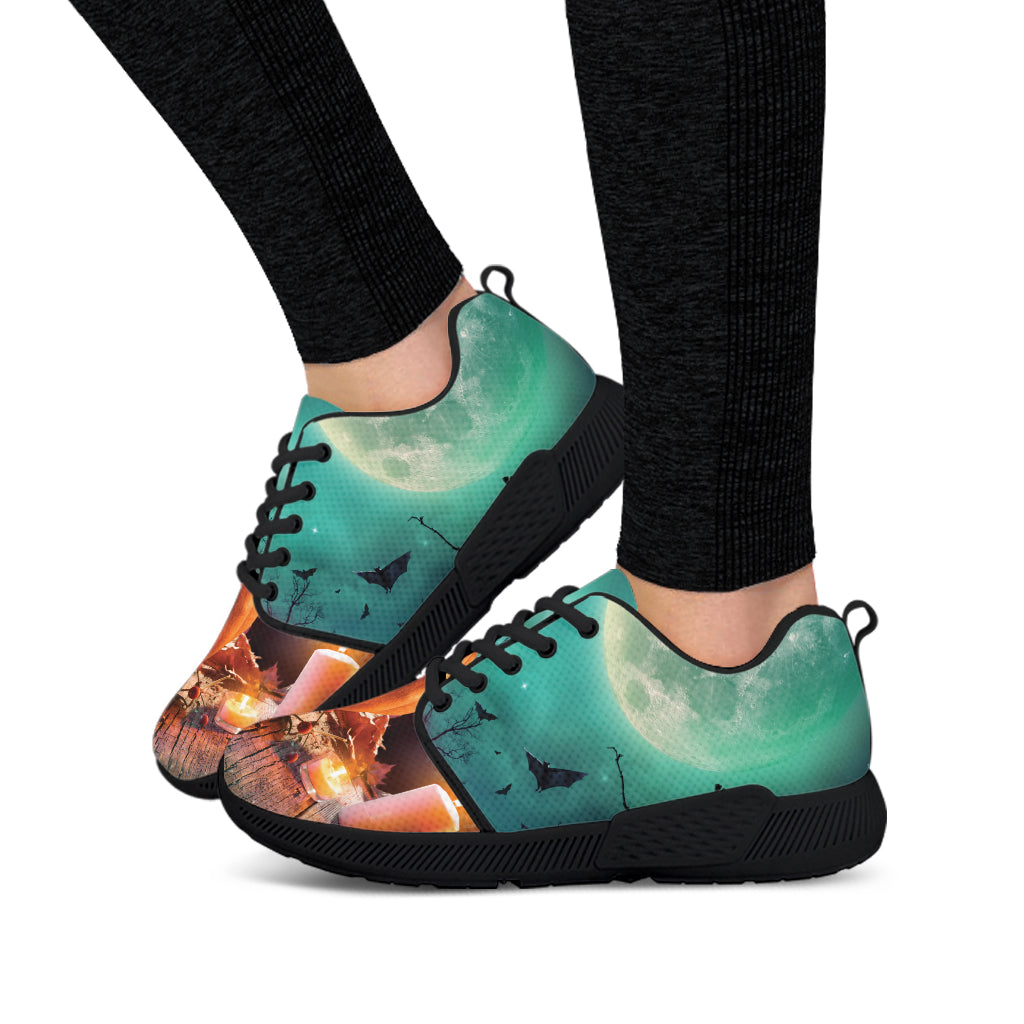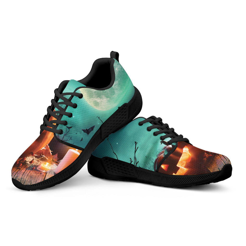 Scary Halloween Pumpkin Print Black Athletic Shoes