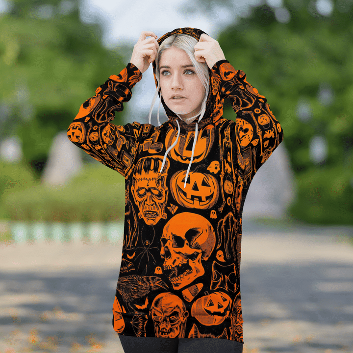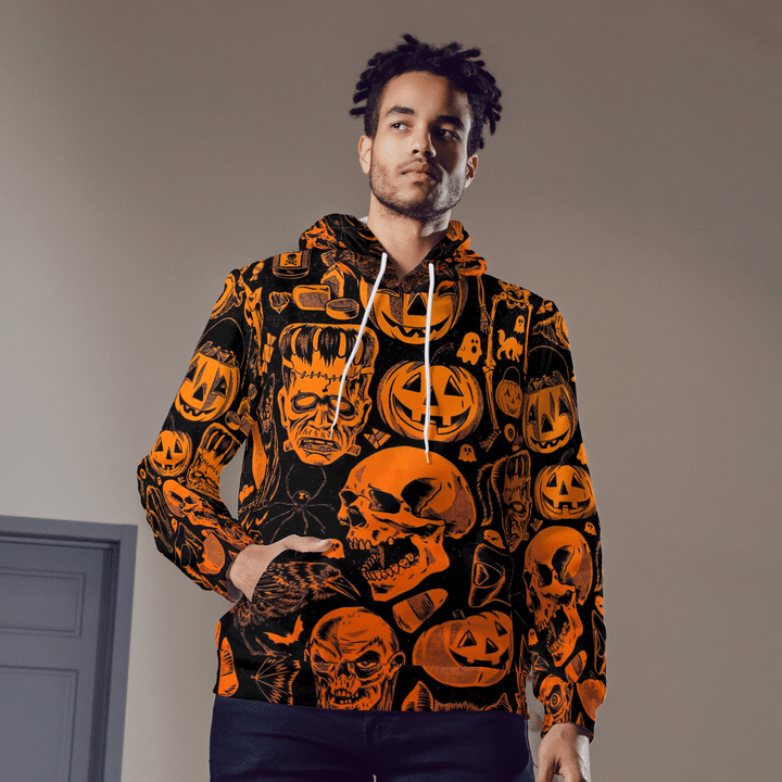 Scary Halloween Villain Symbols Pumpkin Skull Zombie Spooky Halloween Black 3D All-Over Print Unisex Hoodie