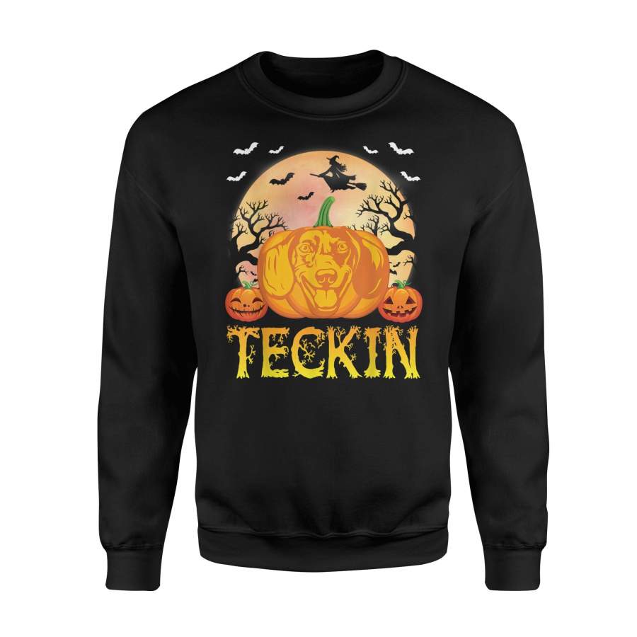 Scary Moon Teckel Dog Pumpkin Face Teckin Happy Halloween Sweatshirt