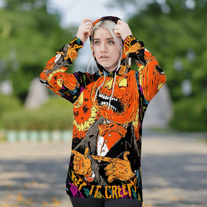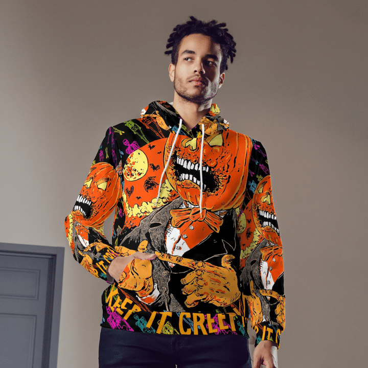 Scary Pumpkin Gentleman Keep It Creepy Spooky Halloween Colorful 3D All-Over Print Unisex Hoodie