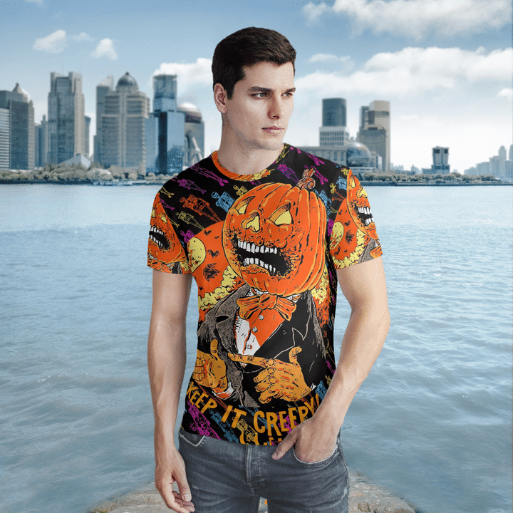 Scary Pumpkin Gentleman Keep It Creepy Spooky Halloween Colorful 3D All-Over Print Unisex T-Shirt