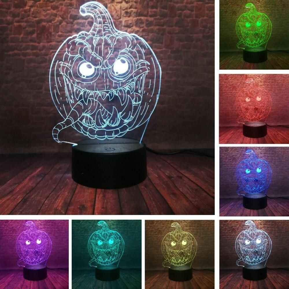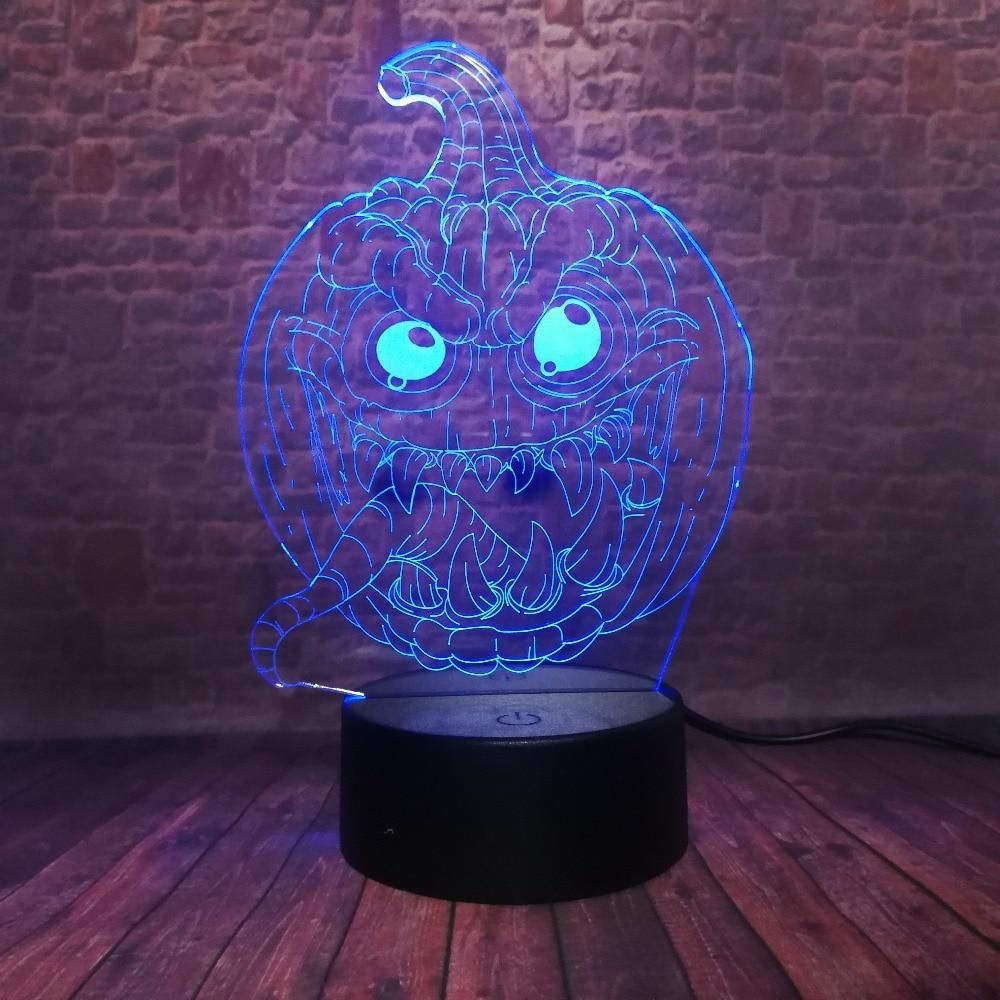 Scary Pumpkin Halloween Decor Pattern 3D Illusion Night Light Led Light