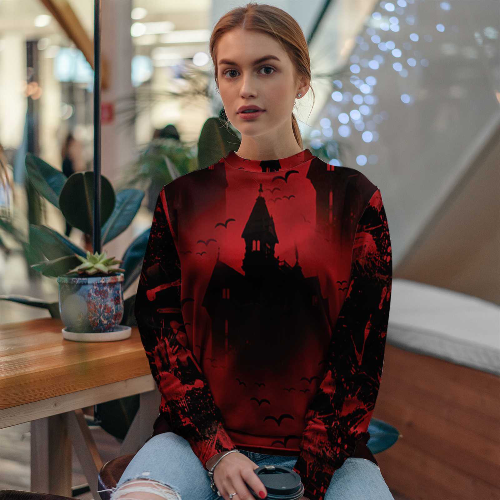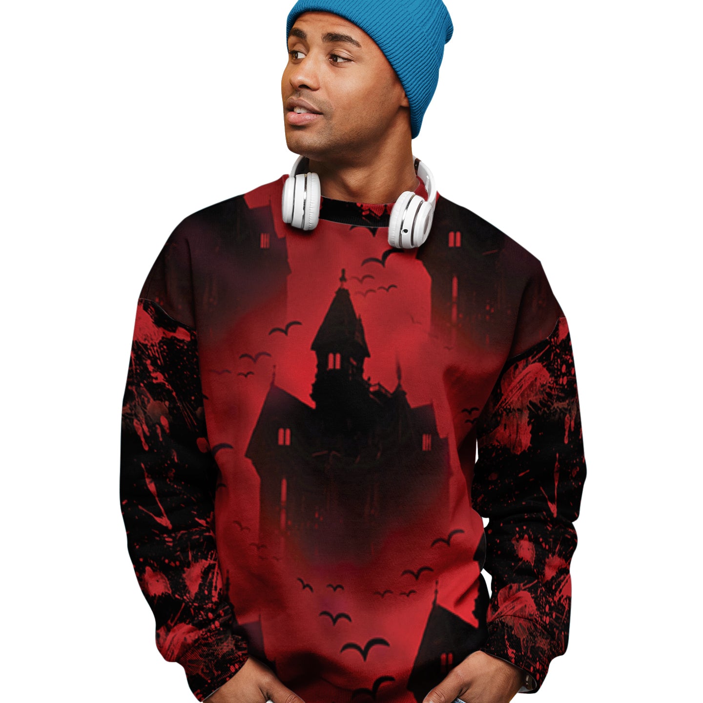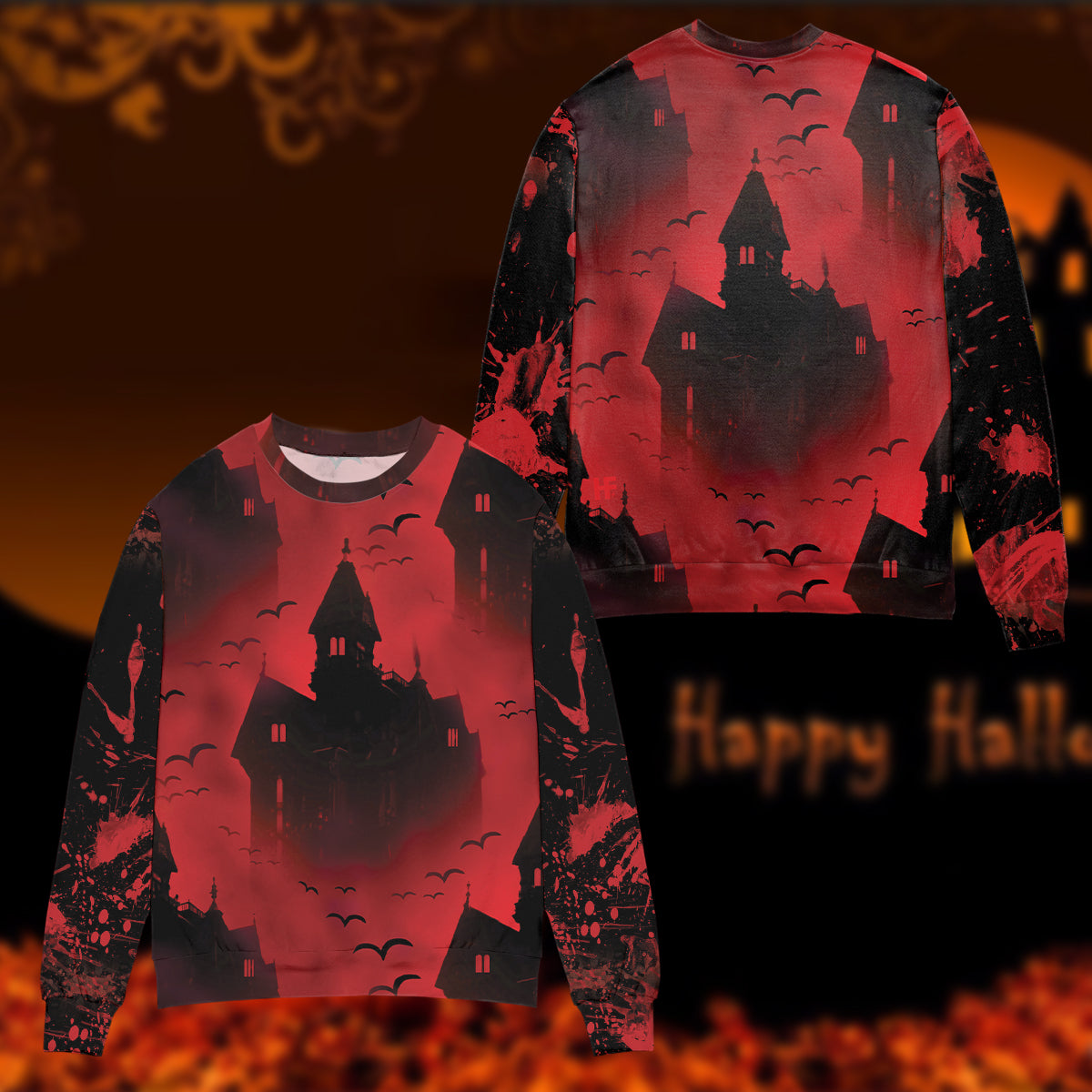 Scary Vampire Castle Halloween All Over Print Sweater, Bloody Full Print Sweater Shirt