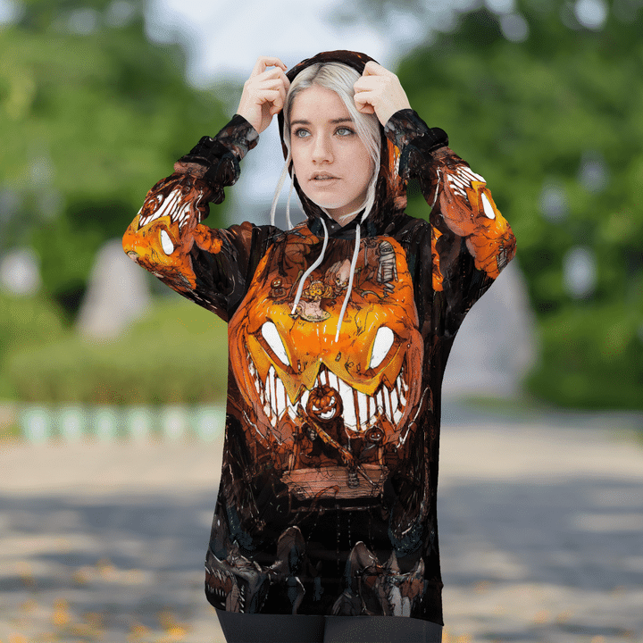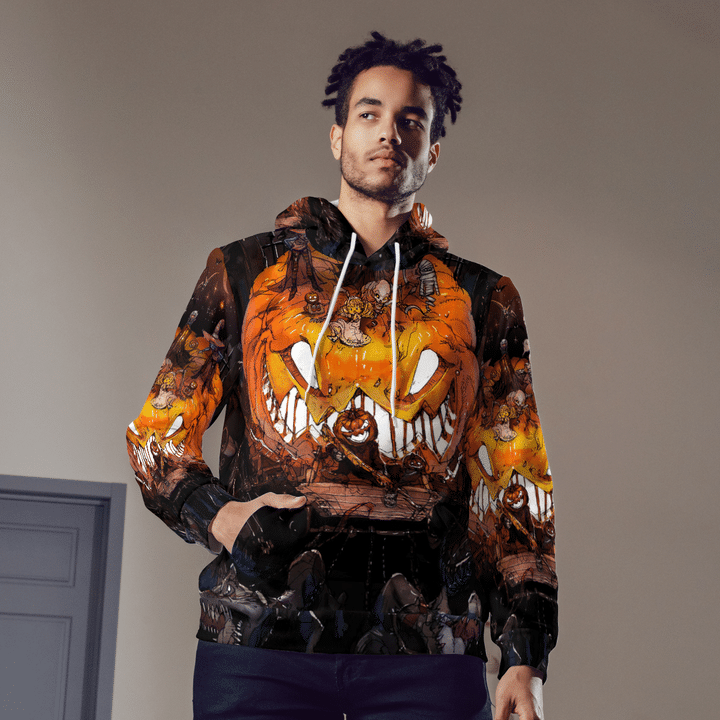 Scary Zombie Pumpkin Rising Haunted Spooky Halloween 3D All-Over Print Unisex Hoodie