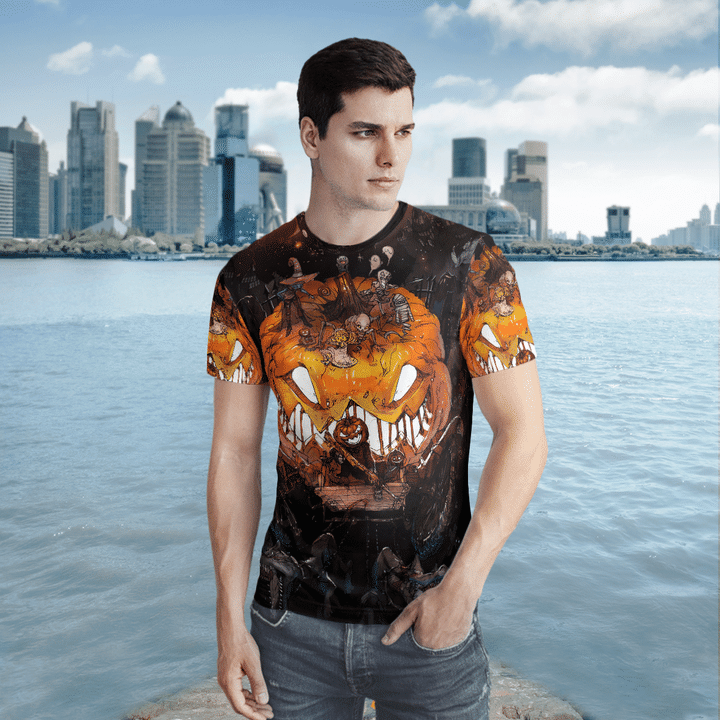 Scary Zombie Pumpkin Rising Haunted Spooky Halloween 3D All-Over Print Unisex T-Shirt