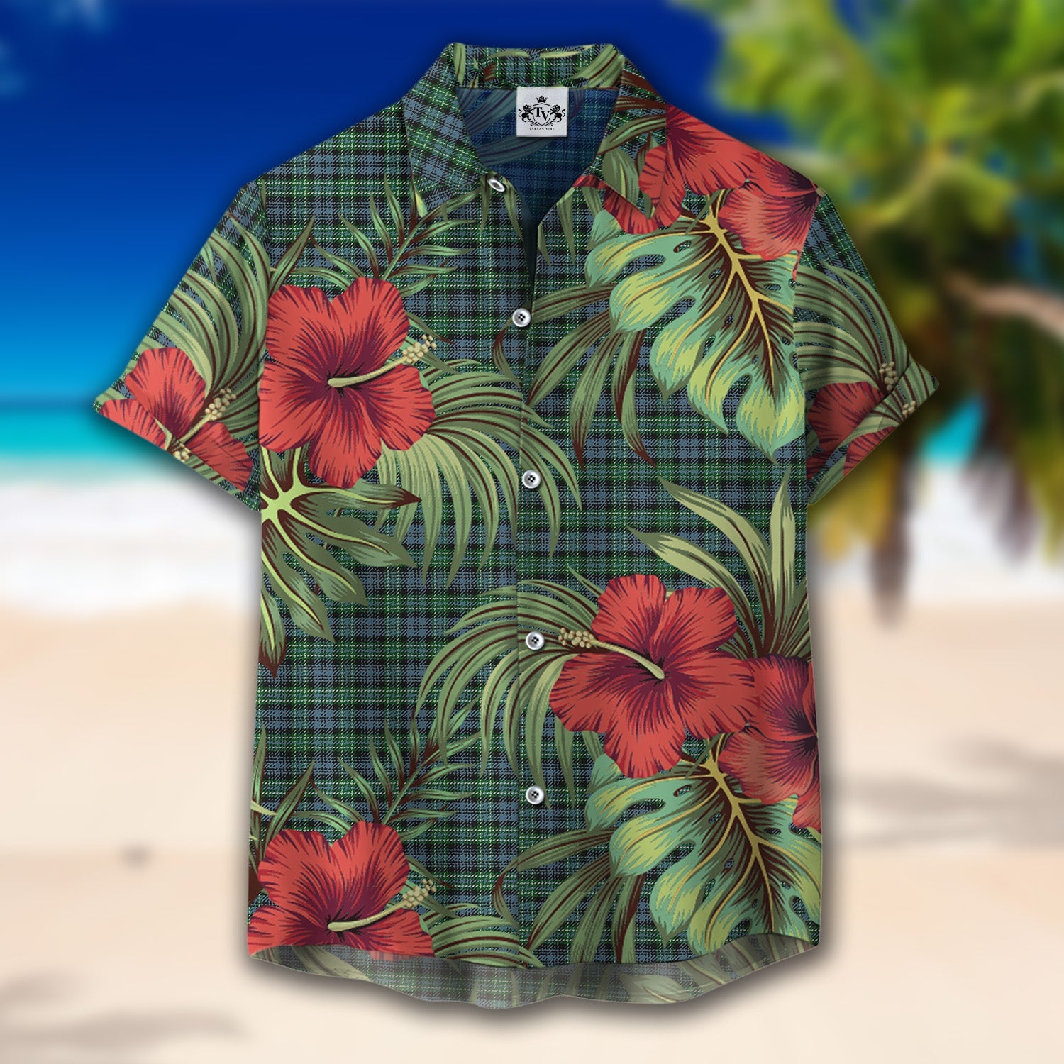 Scottish Tartan Arbuthnot Clan Hawaiian Shirt Hibiscus – Tropical Garden Style