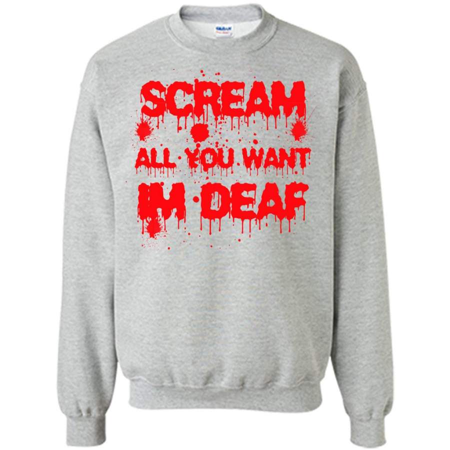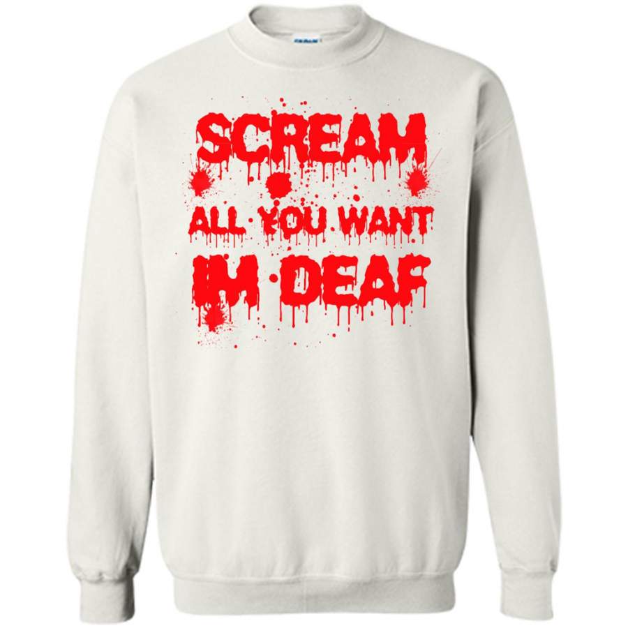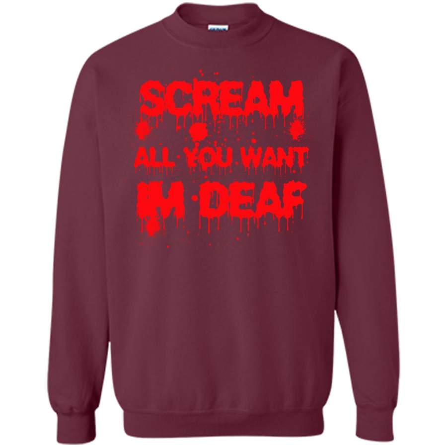 Scream all you want i’m Deaf ASL Halloween – Gildan Crewneck Sweatshirt