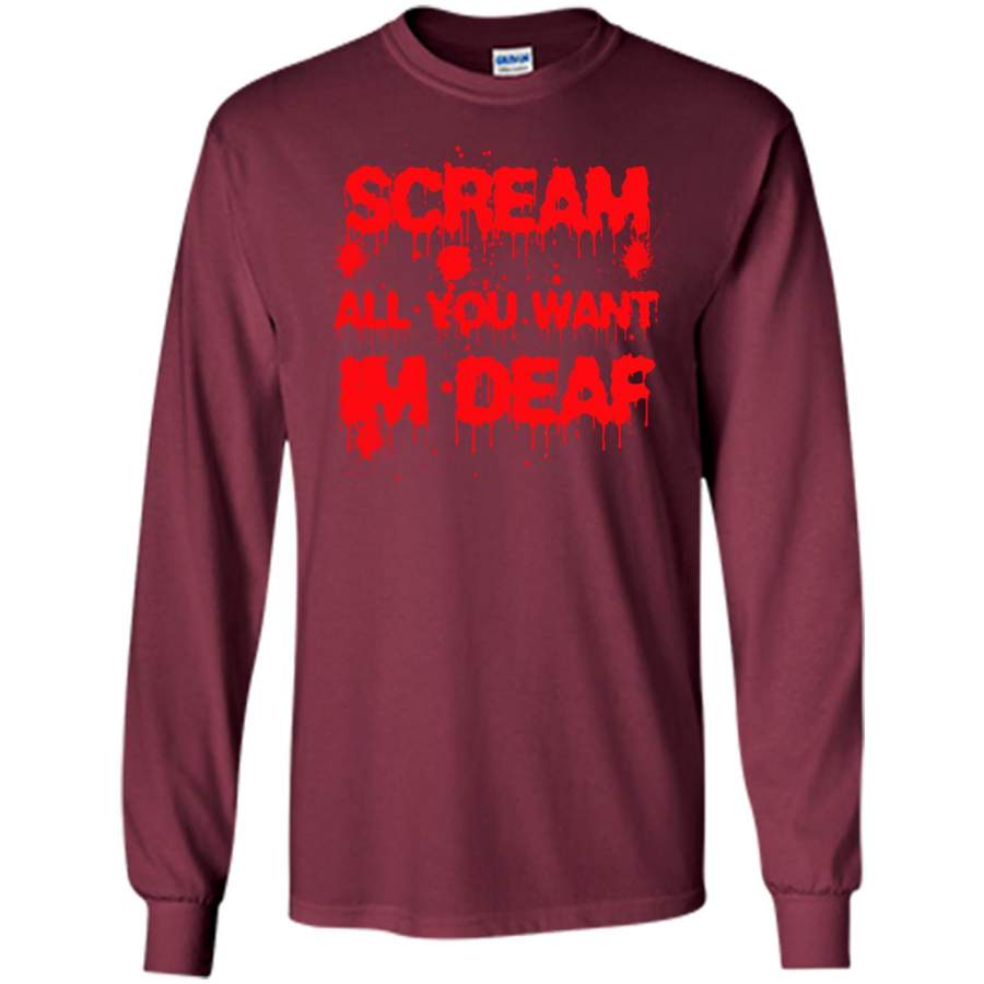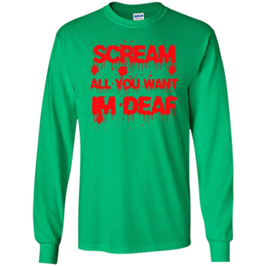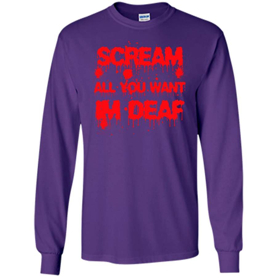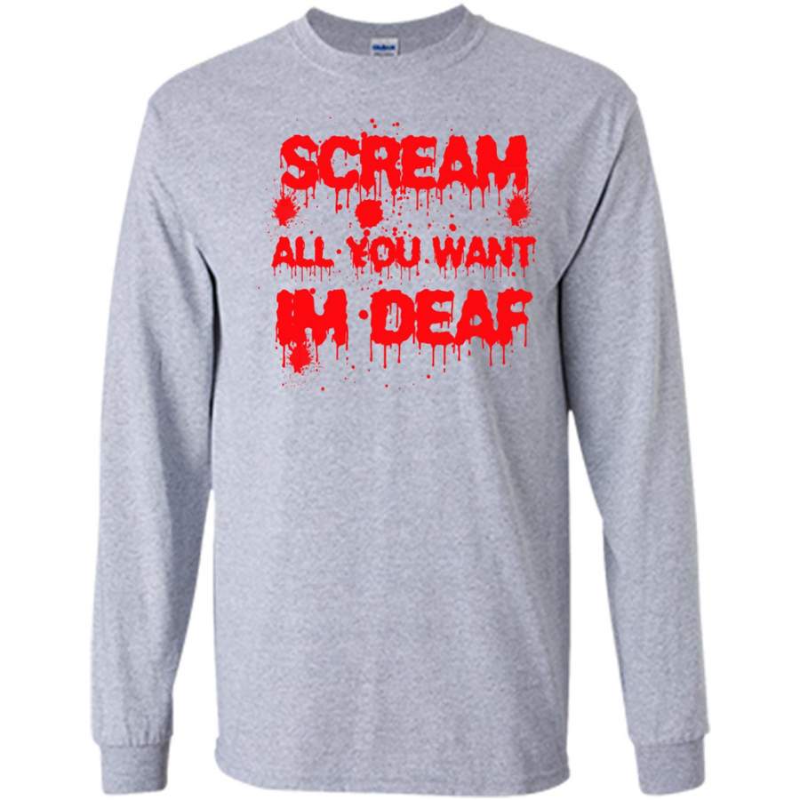 Scream all you want i’m Deaf ASL Halloween – Gildan Long Sleeve Shirt