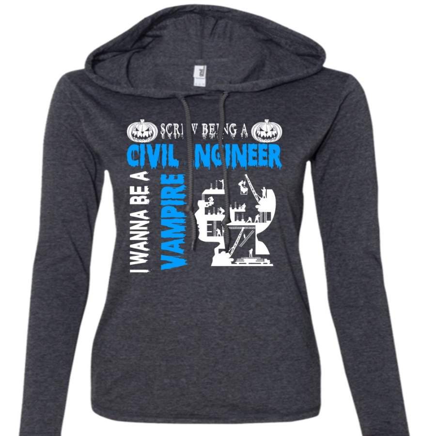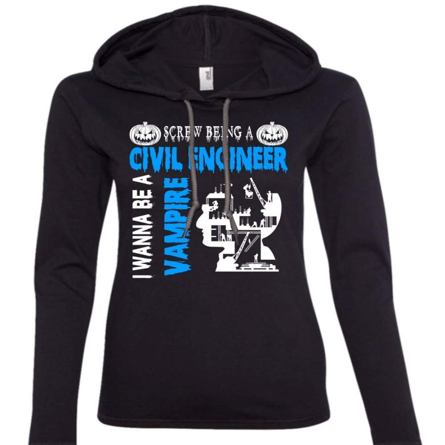 Screw Being A Civil Engineer T Shirt, I Wanna Be A Vampire T Shirt (Anvil Ladies Ringspun Hooded)