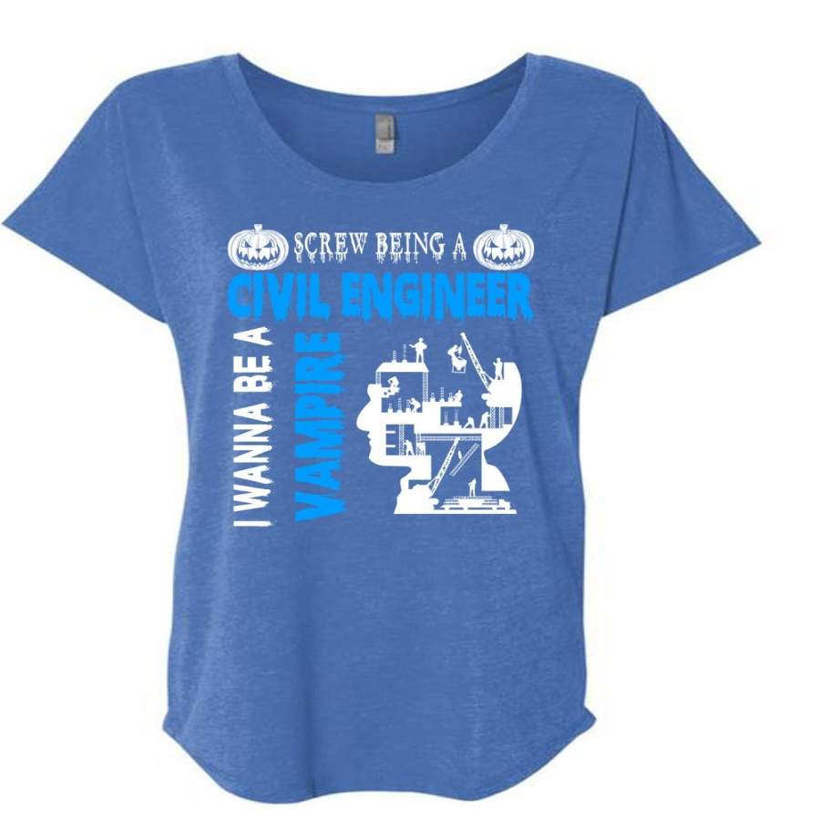 Screw Being A Civil Engineer T Shirt, I Wanna Be A Vampire T Shirt, Cool Shirt (Ladies’ Triblend Dolman Sleeve)