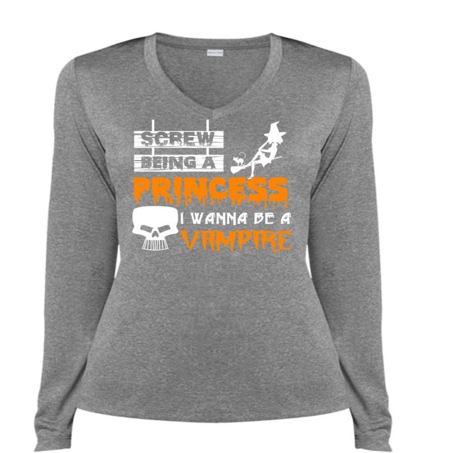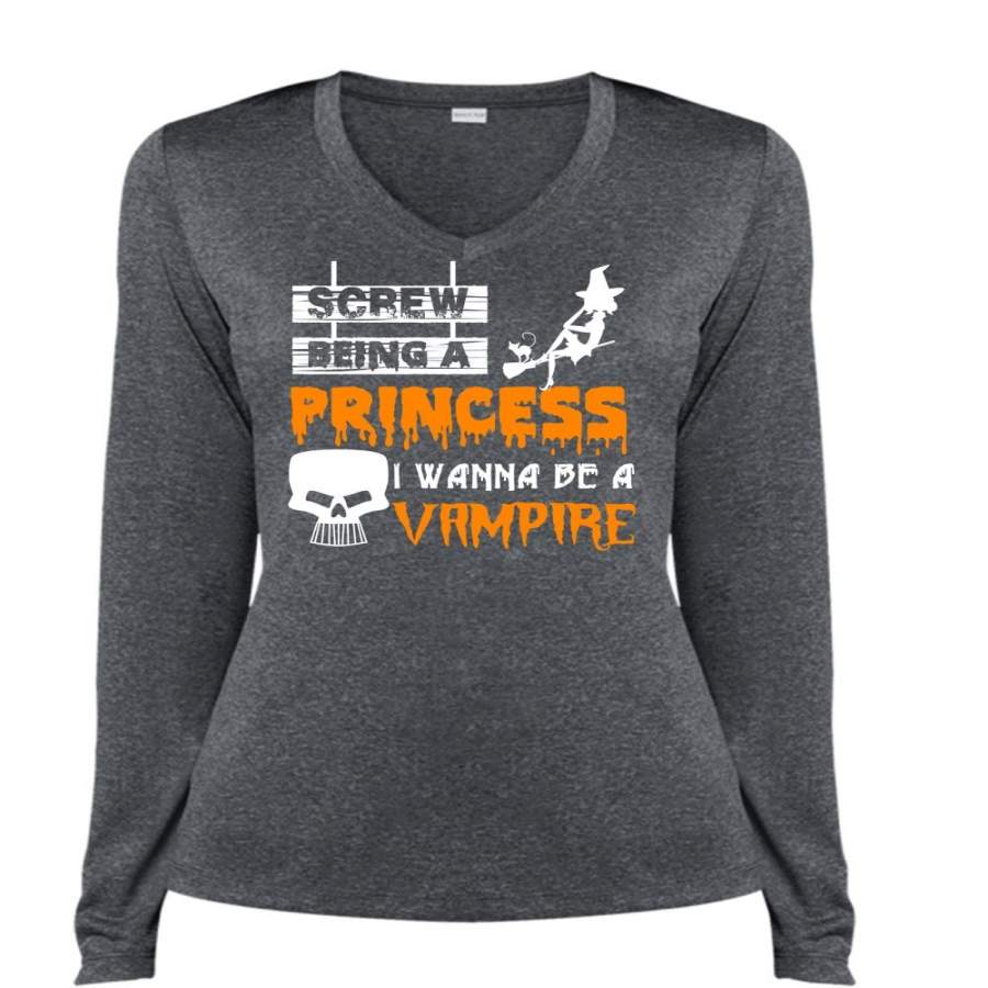 Screw Being A Princess T Shirt, I Wanna Be A Vampire T Shirt, Cool Shirt (Ladies LS Heather V-Neck)