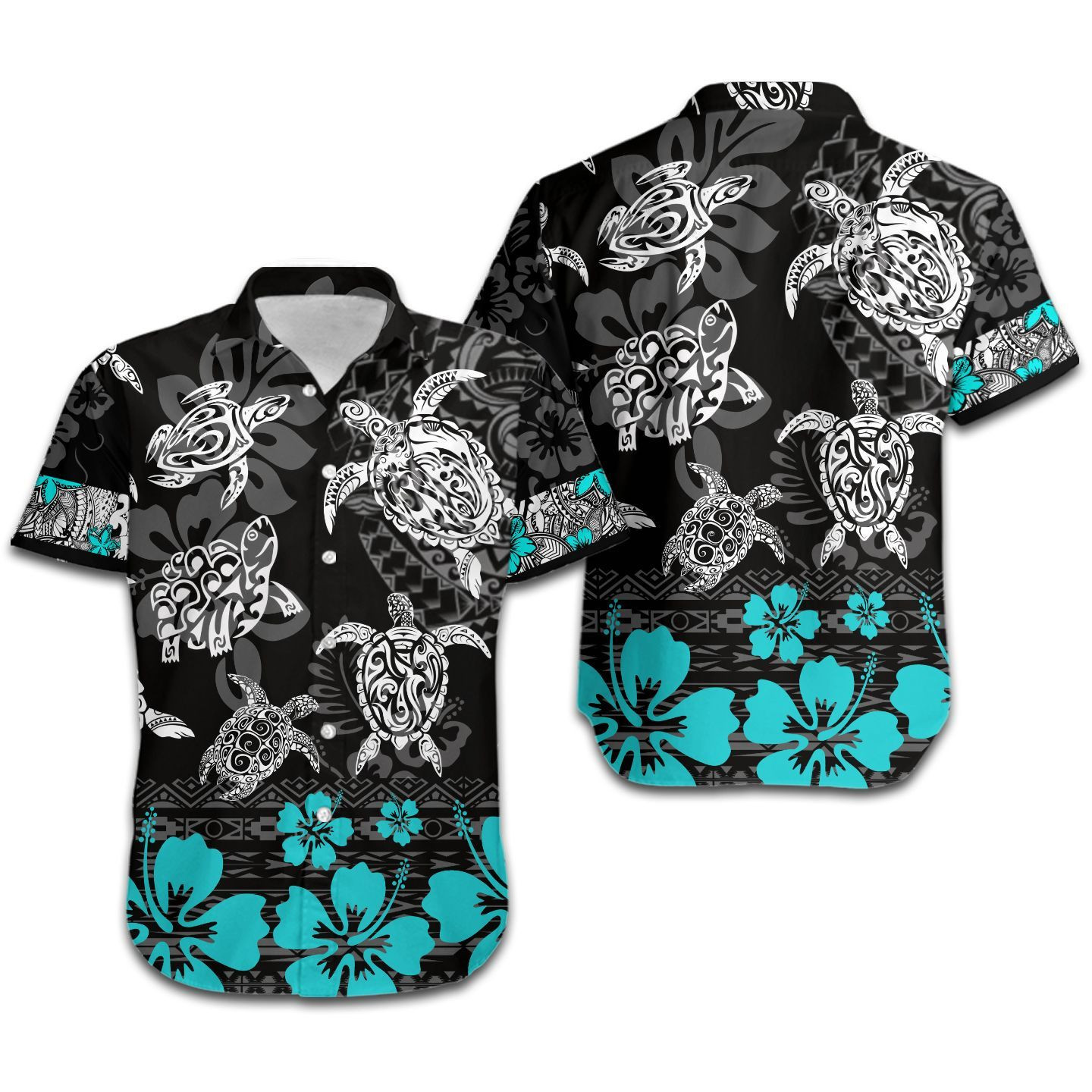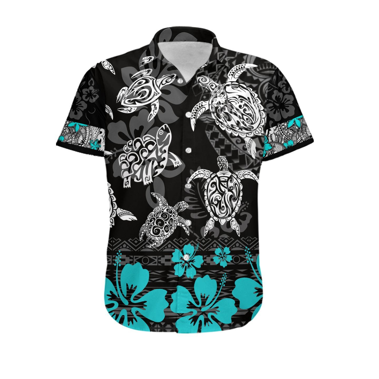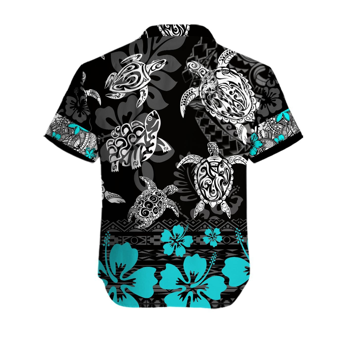 Sea Turtle Polynesian Tattoo Pattern Hibiscus Troipcal Women Aloha Button Up Hawaiian Shirt For Animal Lovers In Summer – Gift For Turtle Lovers