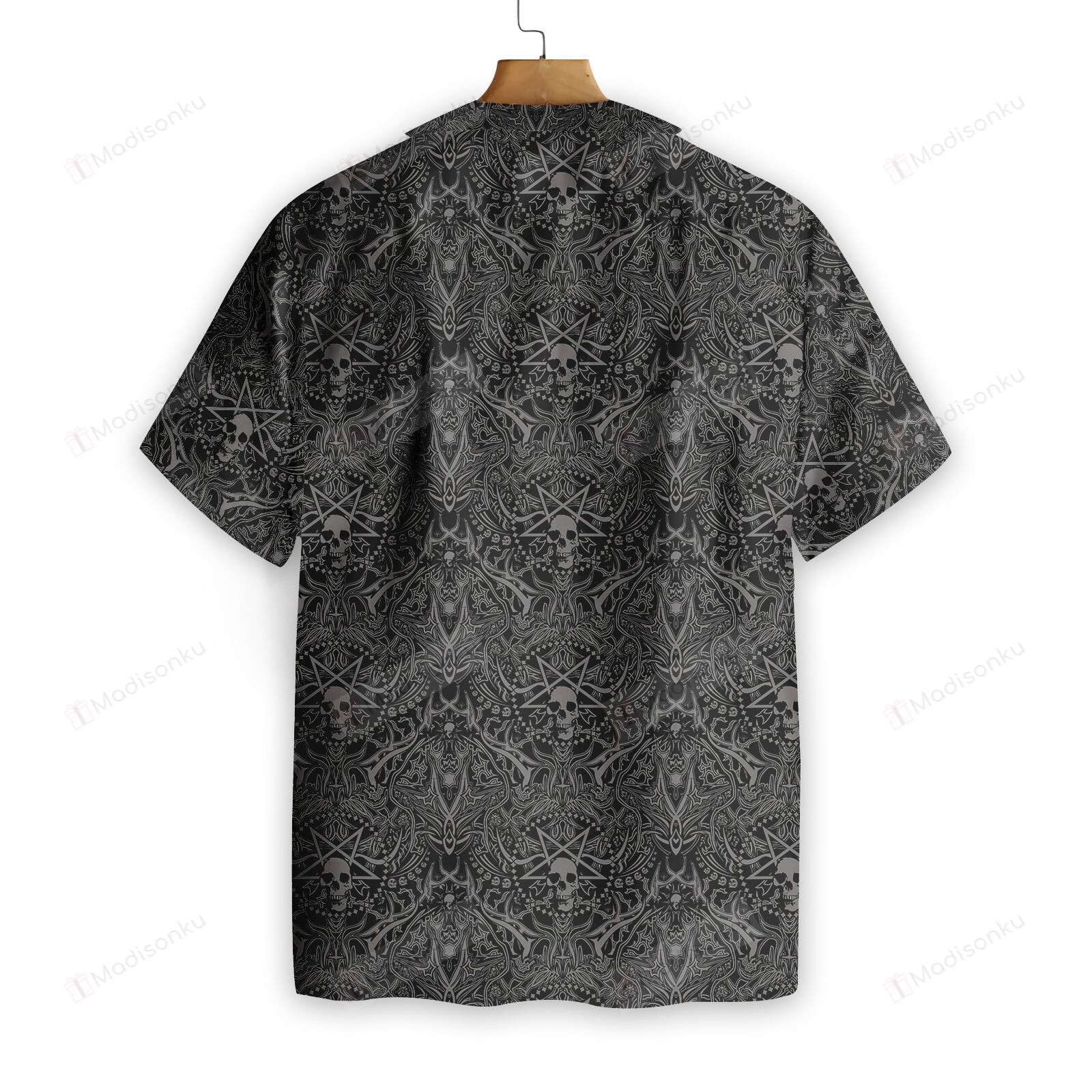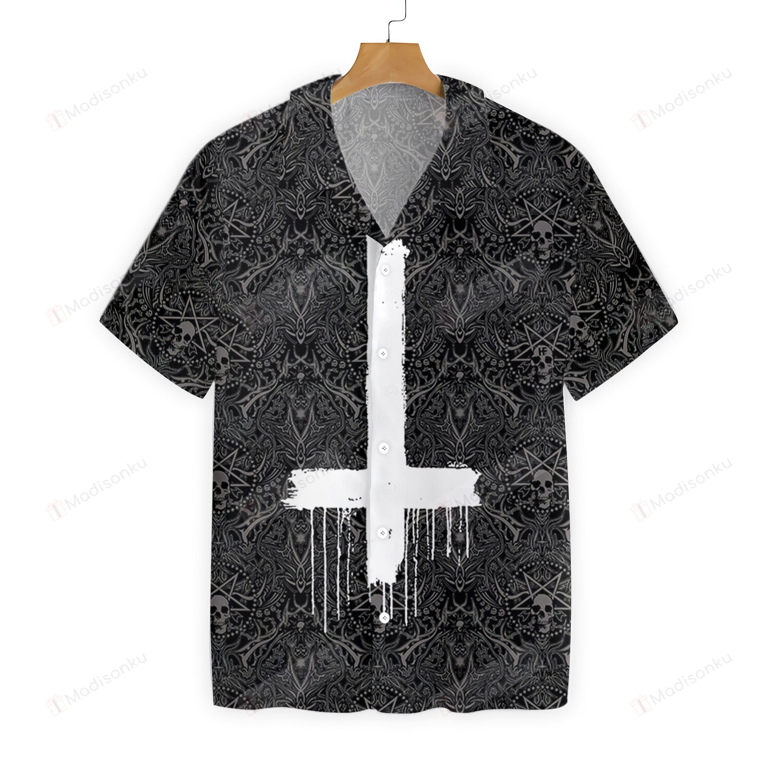 Seamless Gothic Skull Pattern Goth Inverted Cross Hawaiian Shirt