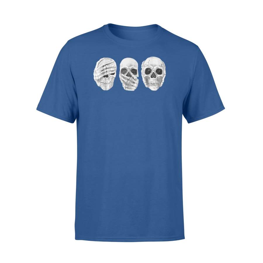 See Speak Hear No Evil Skeleton Skull Halloween T-Shirt – Comfort T-shirt