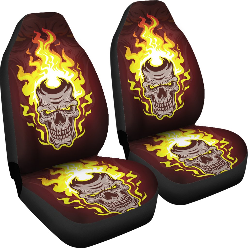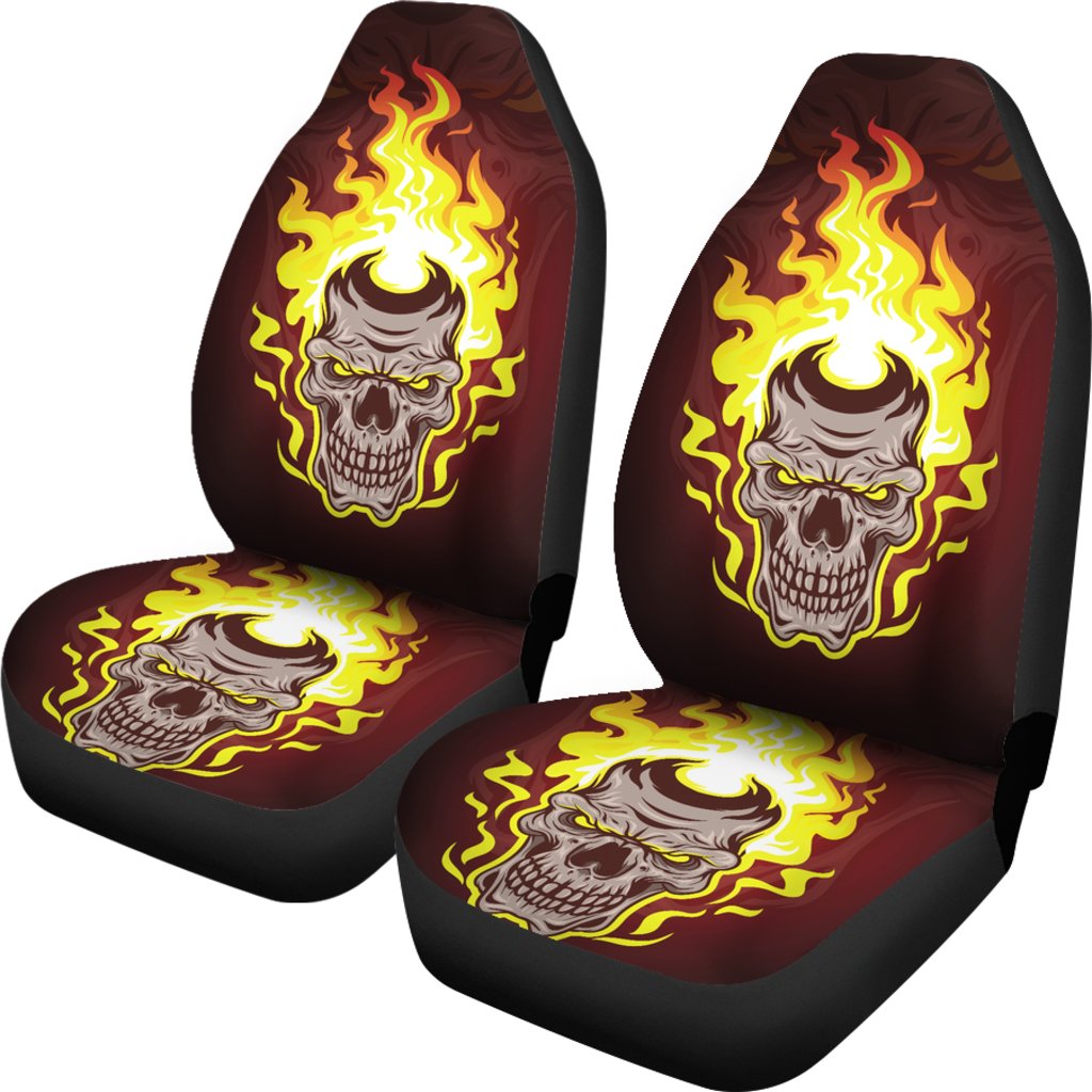 Set of 2 – Gothic horror Halloween skull flaming drum, skull car seat cover