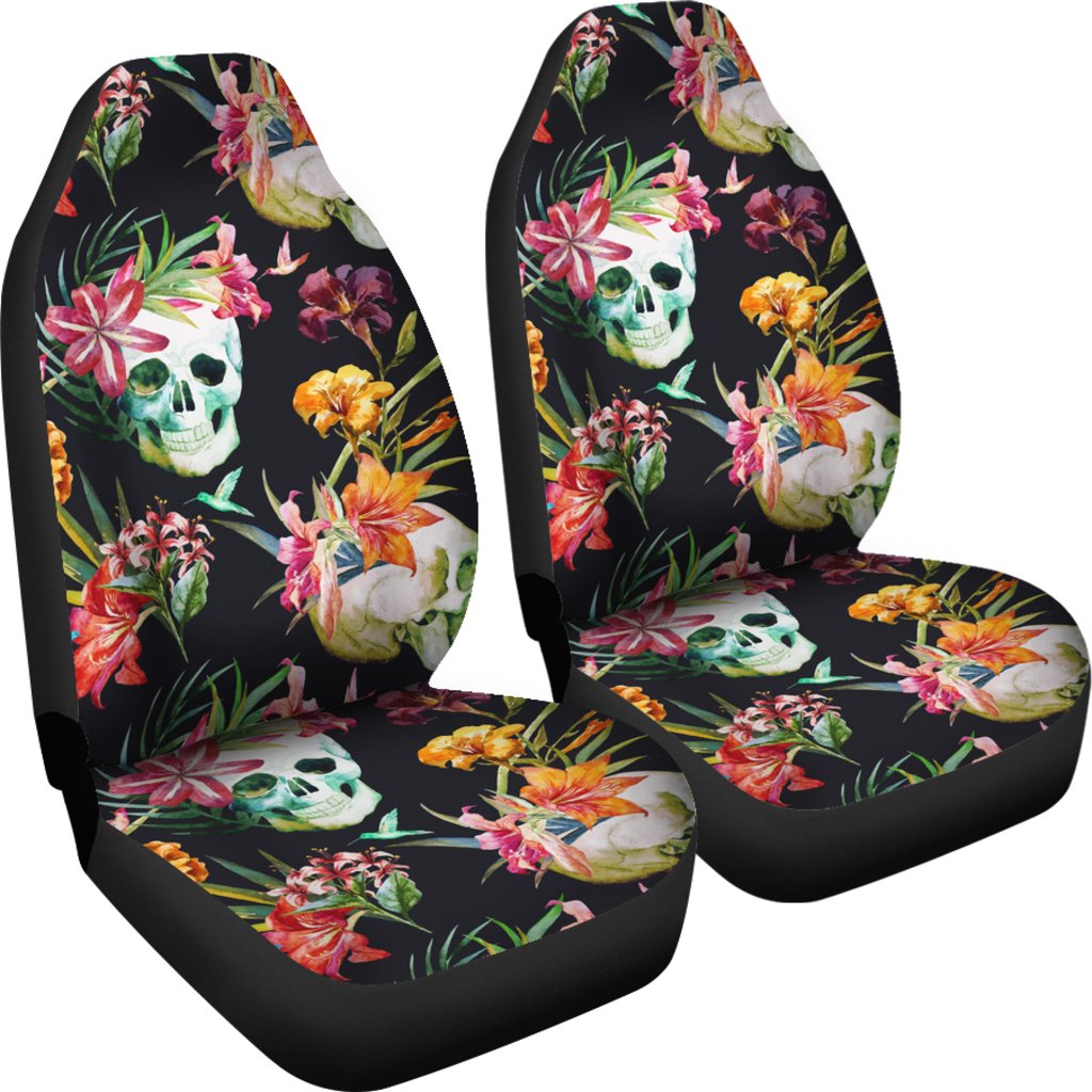 Set of 2 pcs – Skull Floral Fire Halloween skull car seat covers