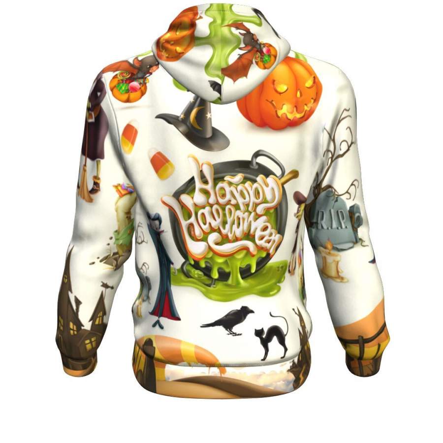 Set Of Cartoon Characters And Objects Party Halloween Hoodie Over Print