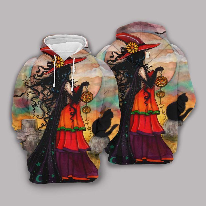 Sexy Witch Evil Pumpkin Halloween Colorful 3D All-Over Print Unisex Hoodie