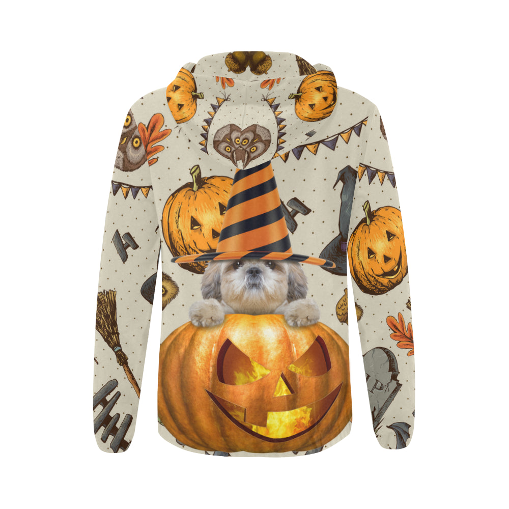 Shih Tzu Halloween All Over Print Full Zip Hoodie for Women