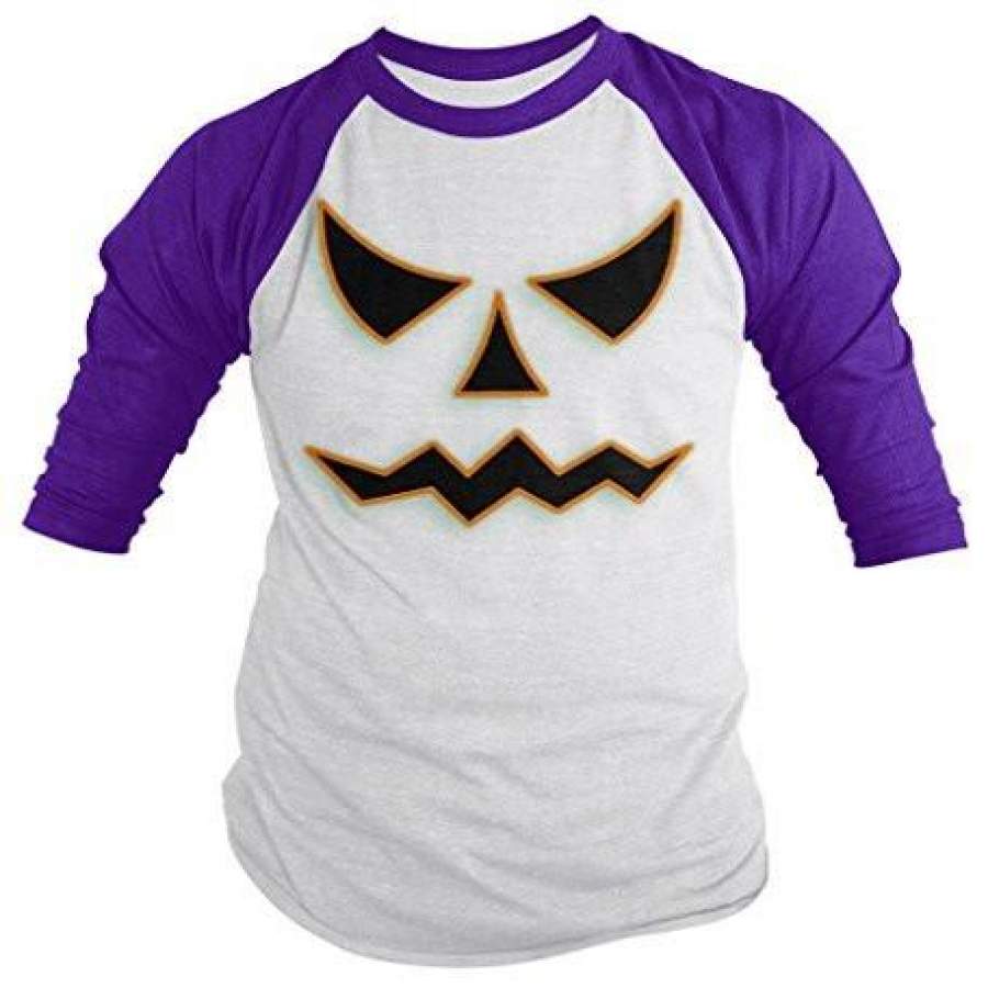 Shirts By Sarah Men’s Halloween Scary Pumpkin Face 3/4 Sleeve Raglan Shirt