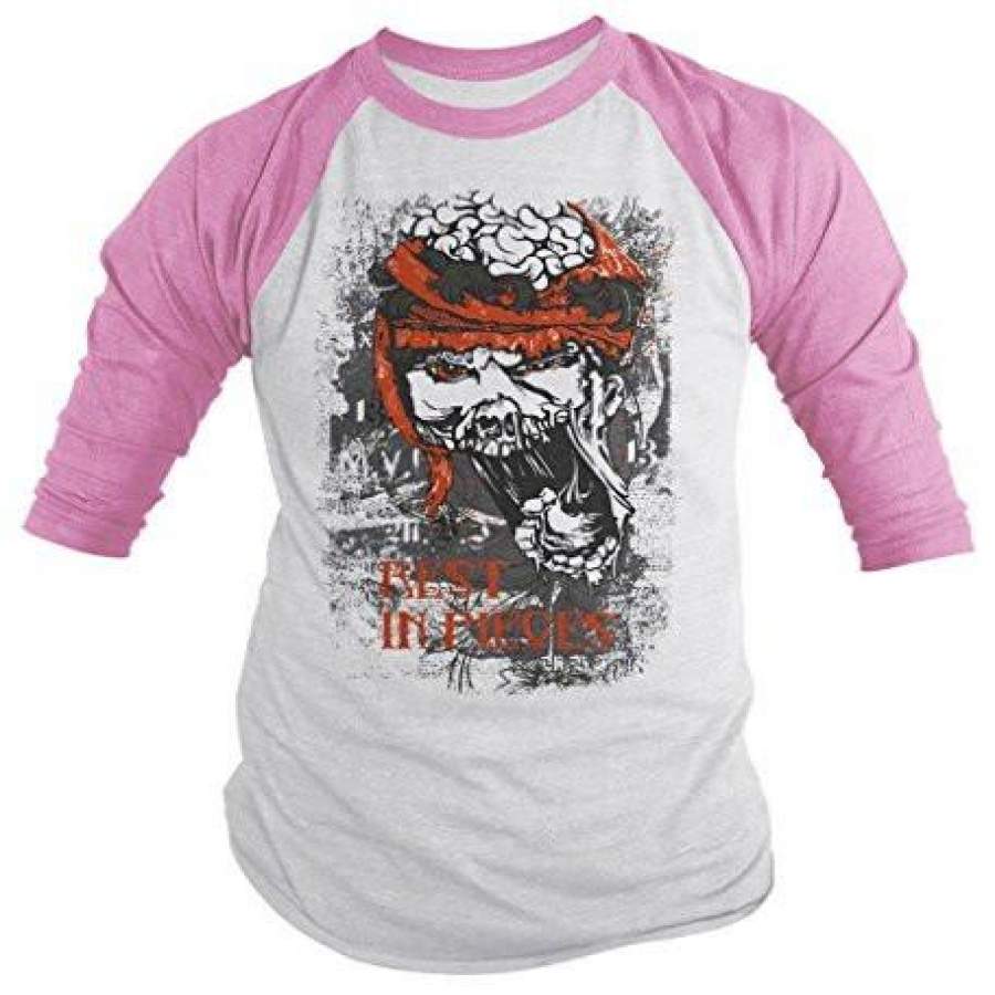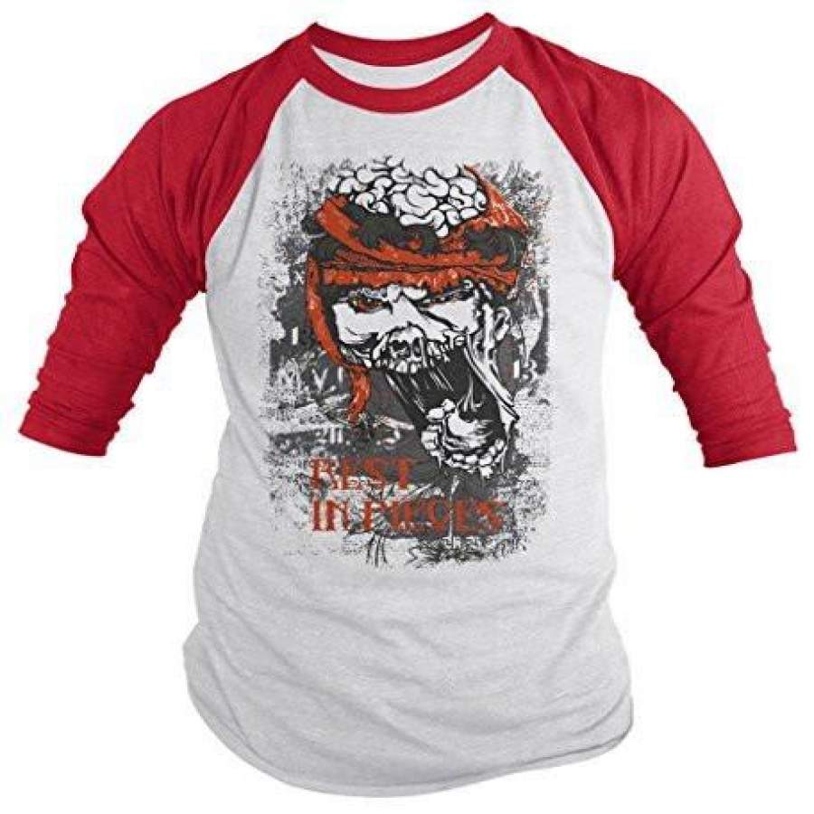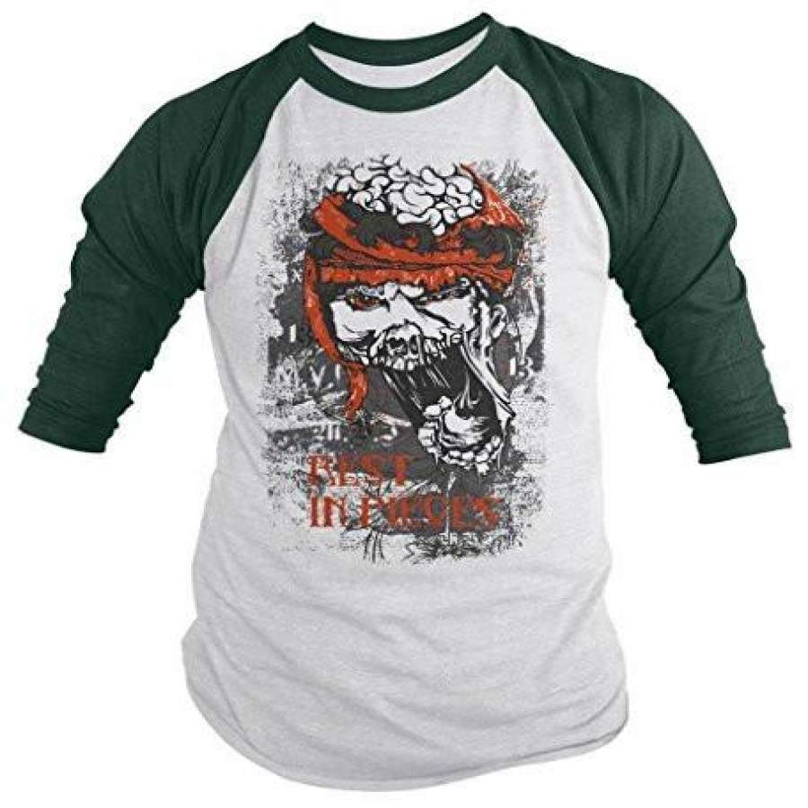 Shirts By Sarah Men’s Halloween Zombie Shirt Rest In Pieces 3/4 Sleeve Raglan Shirts