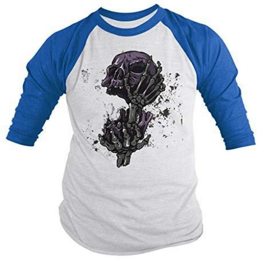 Shirts By Sarah Men’s Skull Shirts Grunge Halloween 3/4 Sleeve Raglan Shirts