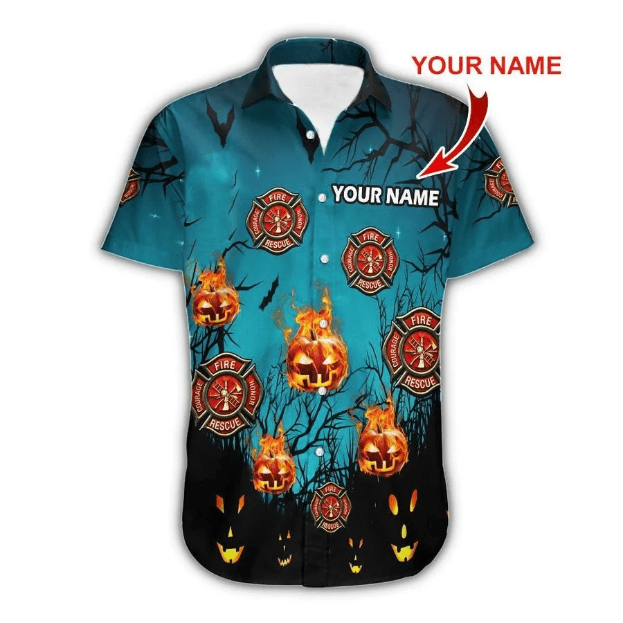 Shop Personalized Custom Hawaiian Aloha Shirts Firefighter Halloween With Name