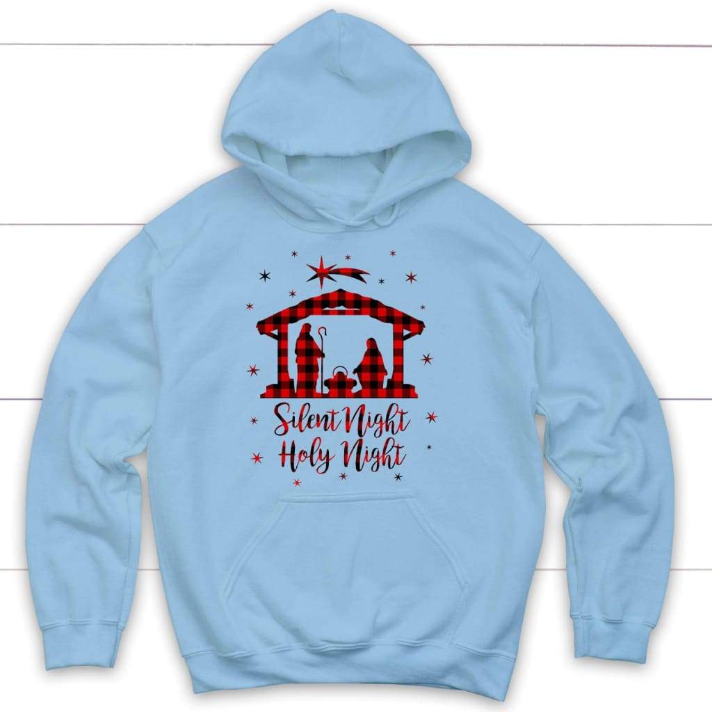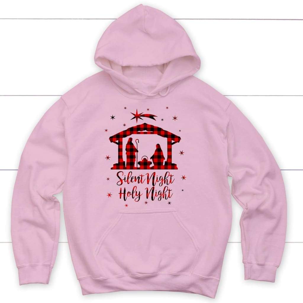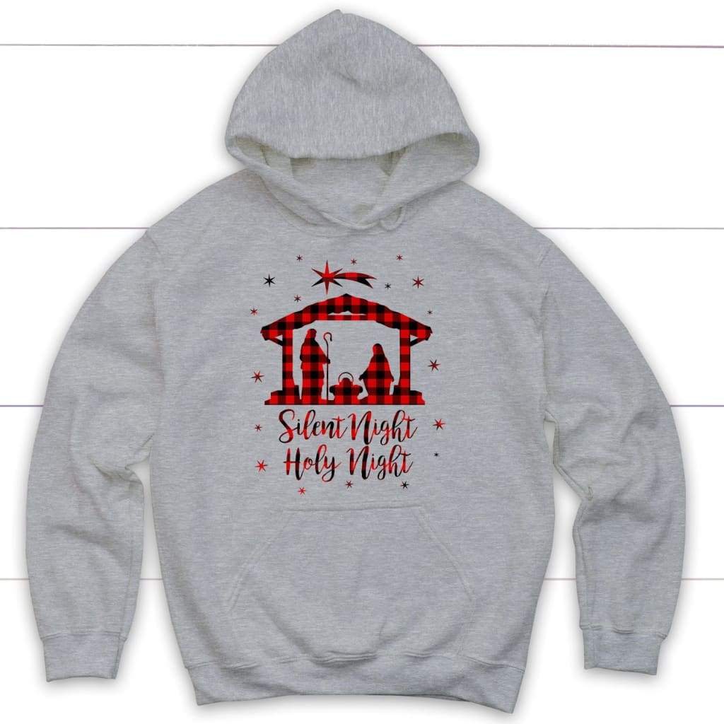 Silent Night Holy Night Buffalo Plaid Christian Hoodie, Christmas Gifts