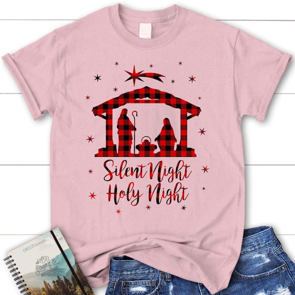Silent Night Holy Night Buffalo Plaid Women’S Christian T-Shirt, Christmas Gifts