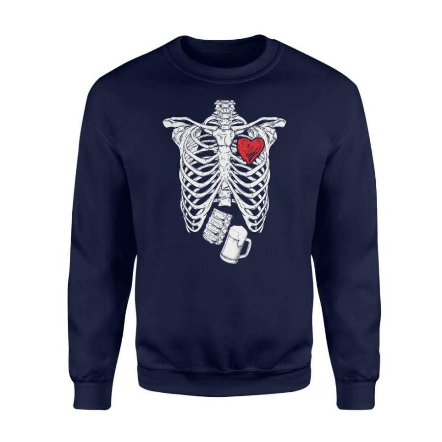 Skeleton Bbq Ribs And Beer Lovers Halloween Shirt – Standard Fleece Sweatshirt