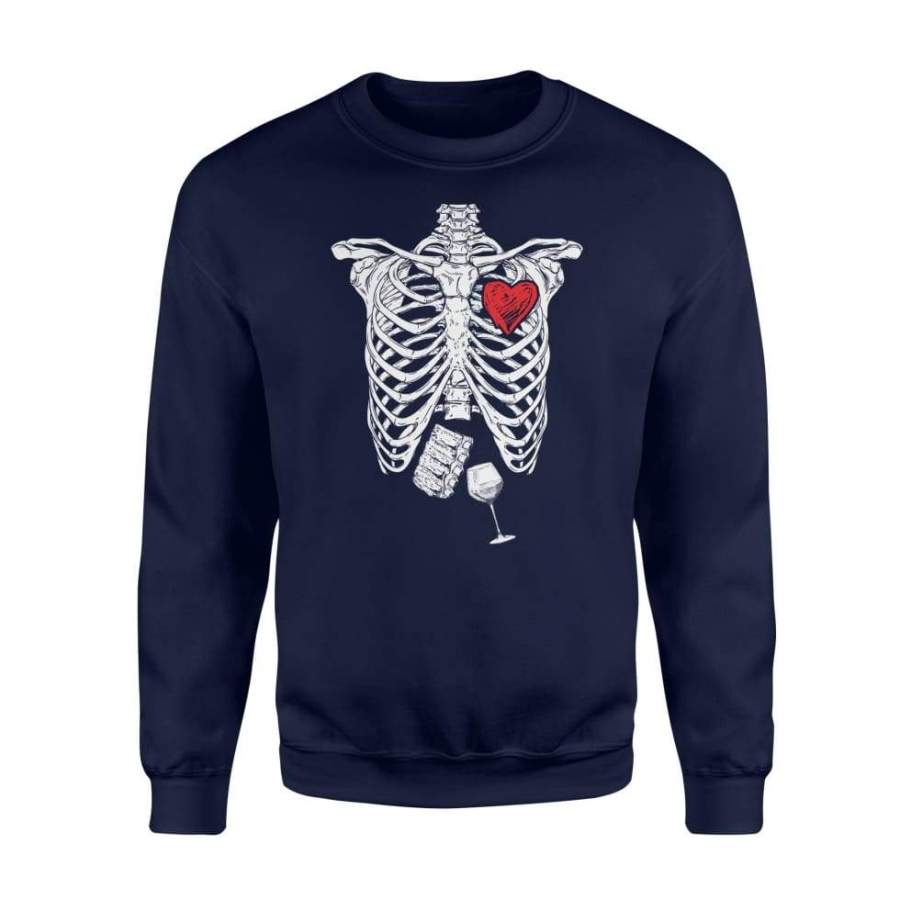 Skeleton Bbq Ribs And Wine Lovers Halloween Shirt – Standard Fleece Sweatshirt