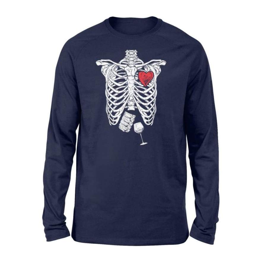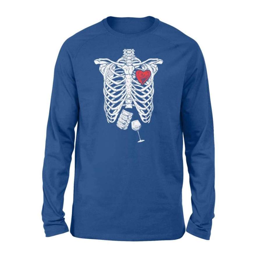 Skeleton Bbq Ribs And Wine Lovers Halloween Shirt – Standard Long Sleeve